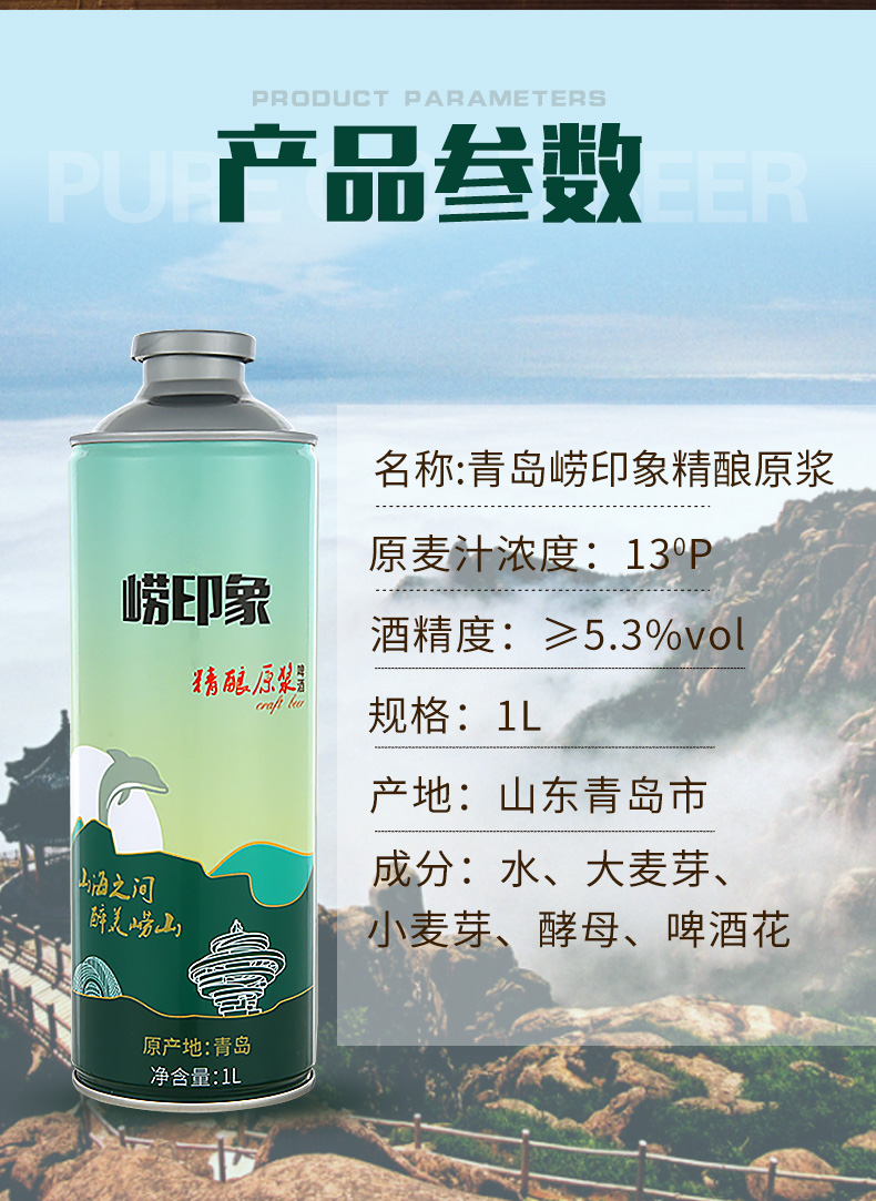 青島特產啤酒嶗印象精釀原漿啤酒1L*6桶箱裝啤酒小麥白啤特價清倉