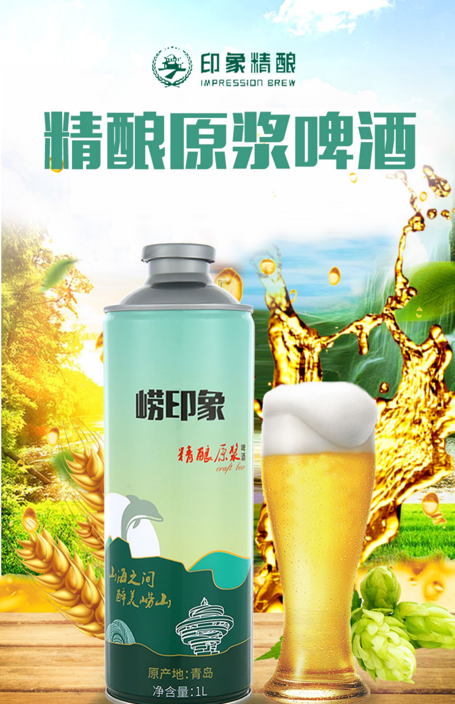 青島特產印象精釀原漿高濃度白啤酒