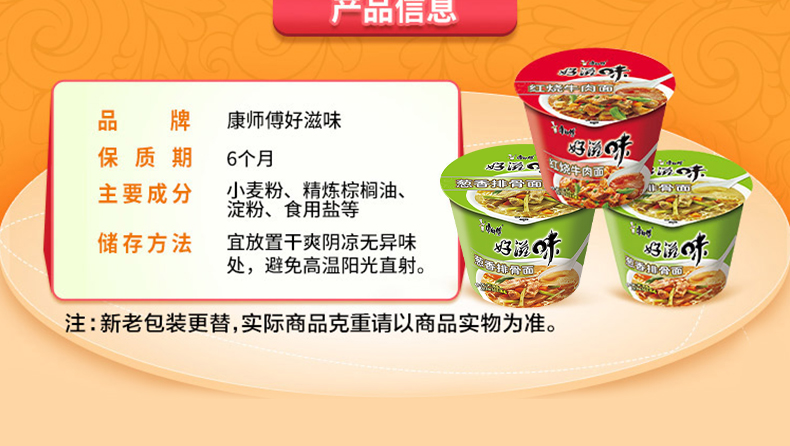 康師傅隨心杯12桶整箱裝小桶牛肉面