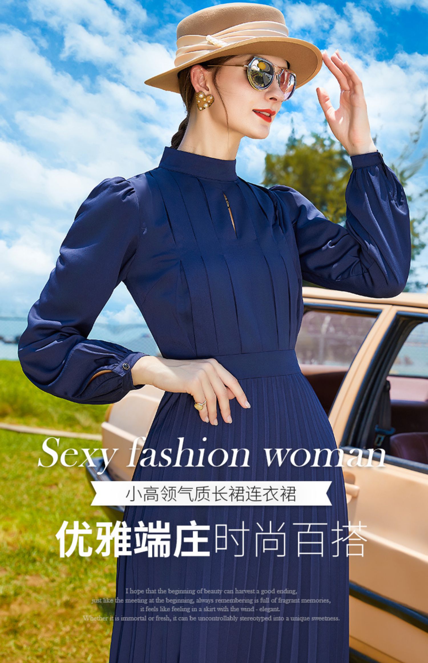 帝弗潤馳春季高領長裙百褶裙時尚洋氣連衣裙顯瘦氣質長袖修身裙子
