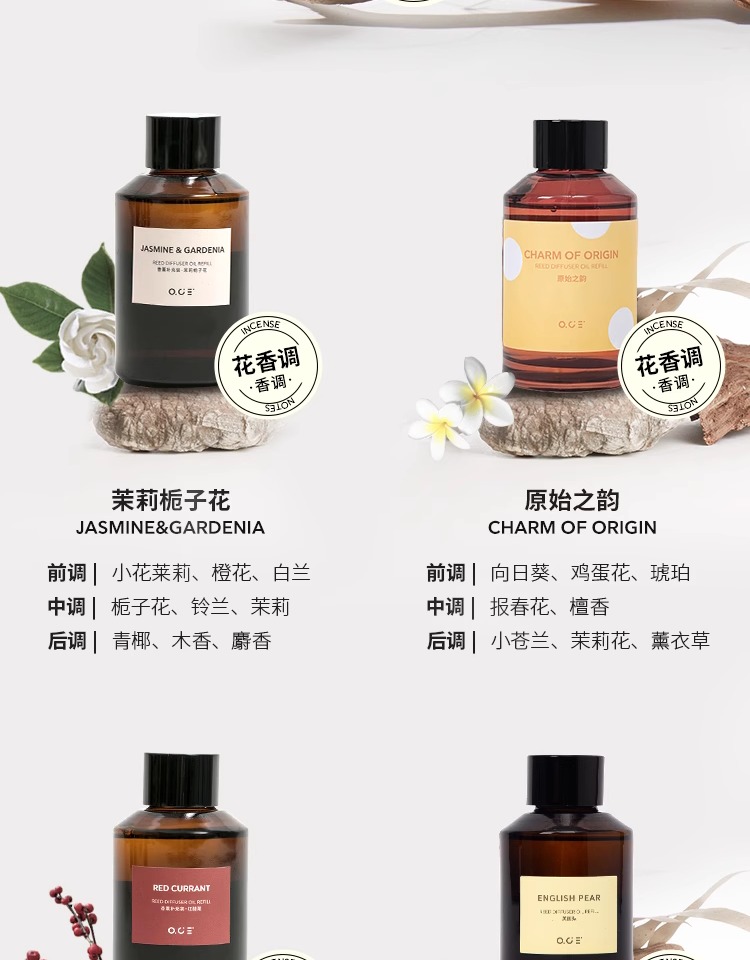 OCE香薰香氛家用室內臥室衛生間空氣清新劑持久無火高級補充裝