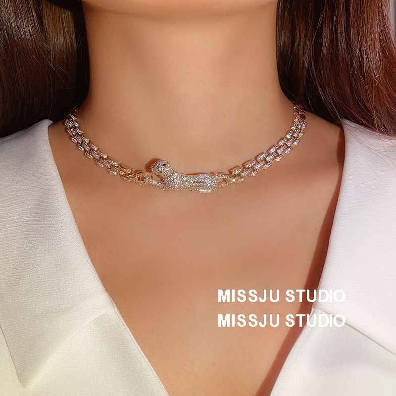 滿鉆豹子項鏈 粗鏈條霸氣動物項鏈潮女奢華百搭名媛晚宴優雅配飾