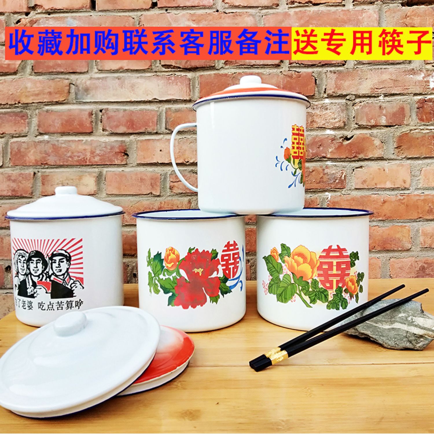 尹正同款搪瓷杯老式大容量號鐵茶缸結婚雙喜字帶蓋泡面缸子馬克杯
