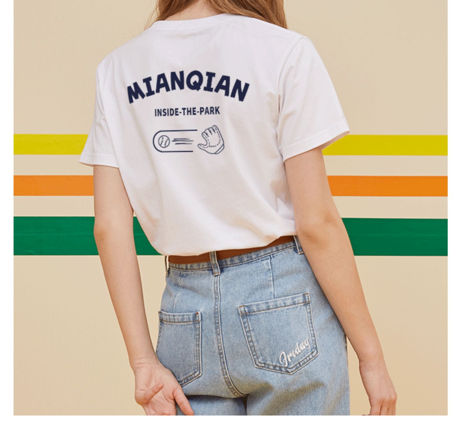 棉牽后背印花正肩短袖t恤女夏白色半袖上衣夏季修身顯瘦純棉體恤