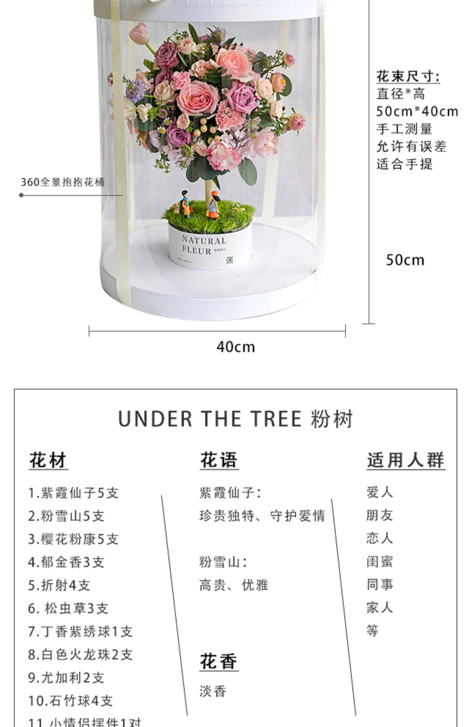 鮮花創意花在樹下玫瑰花抱抱花桶混搭滿天星禮盒生日廣州同城速遞