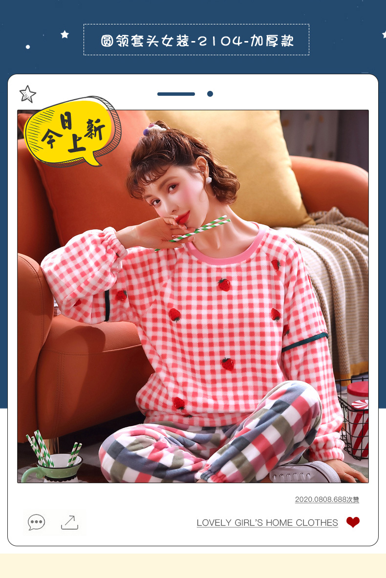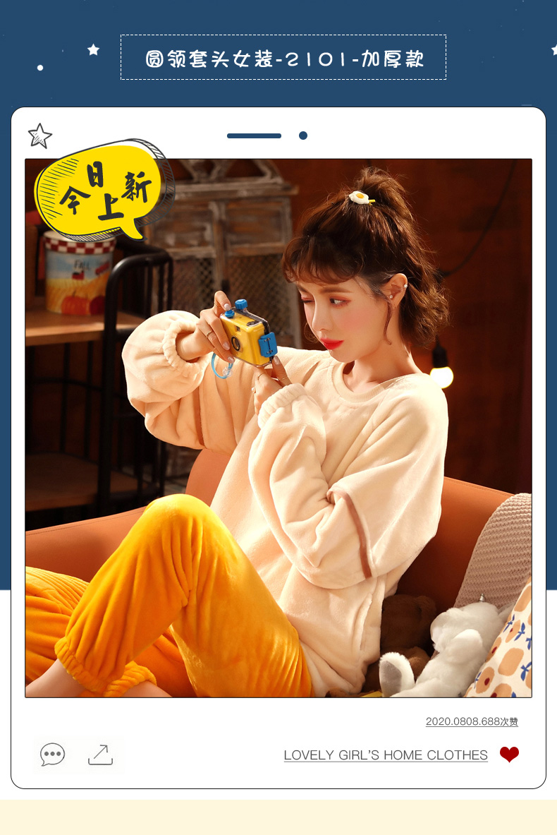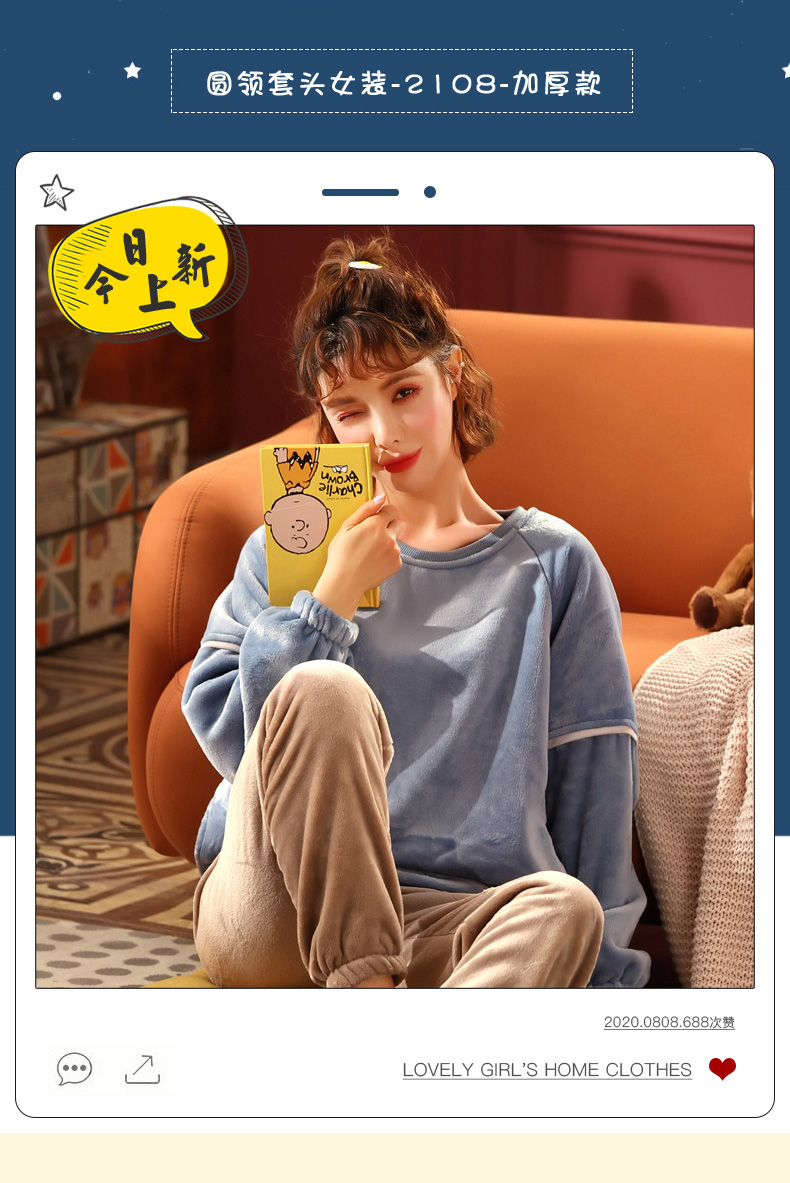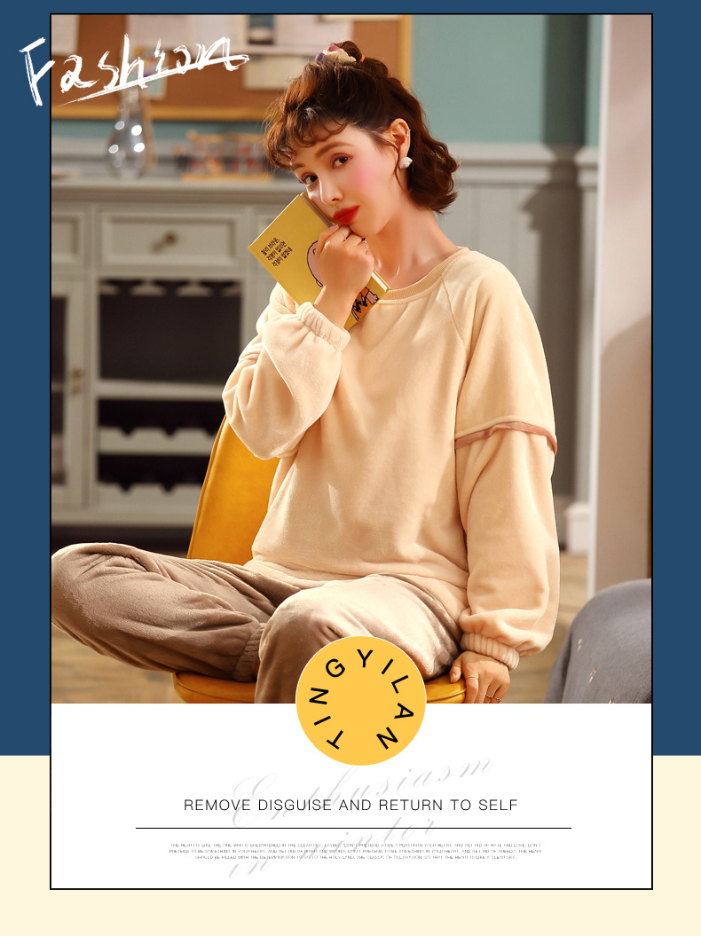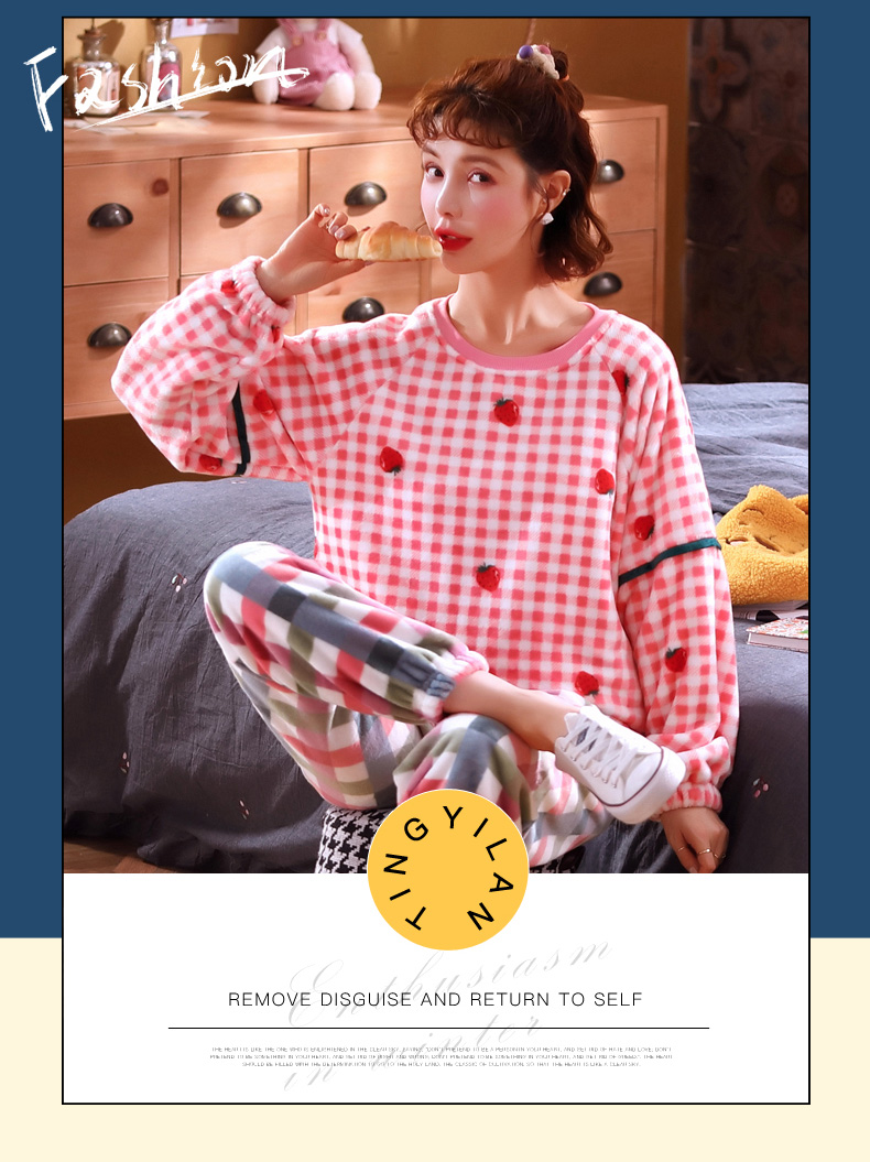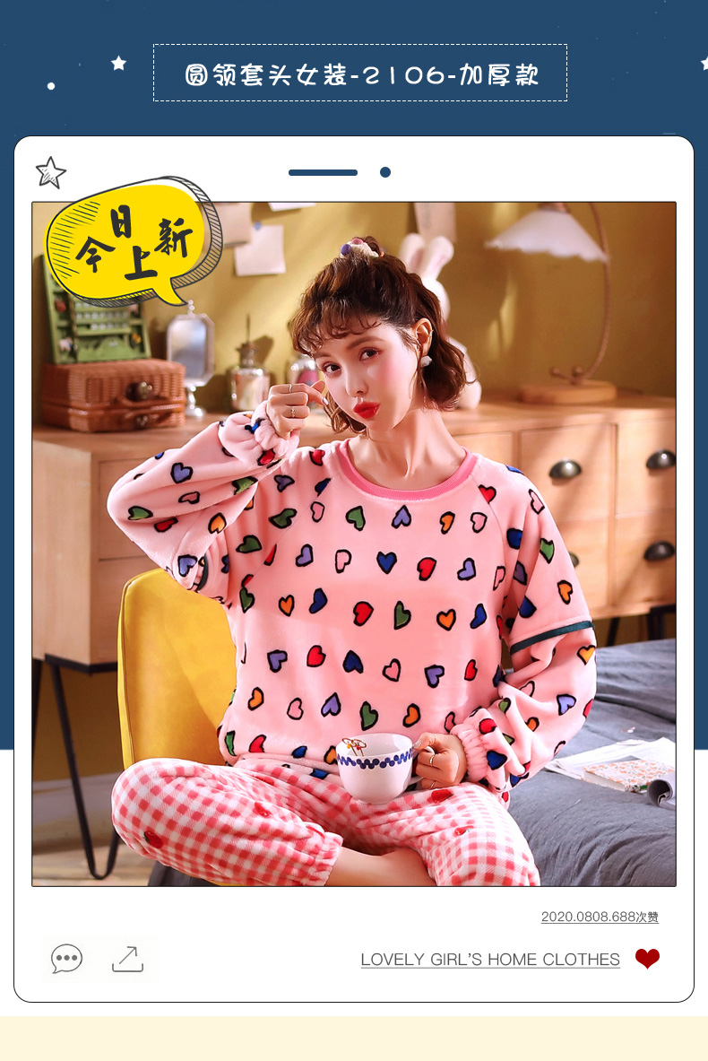 秋冬毛絨長袖可愛加絨珊瑚絨睡衣