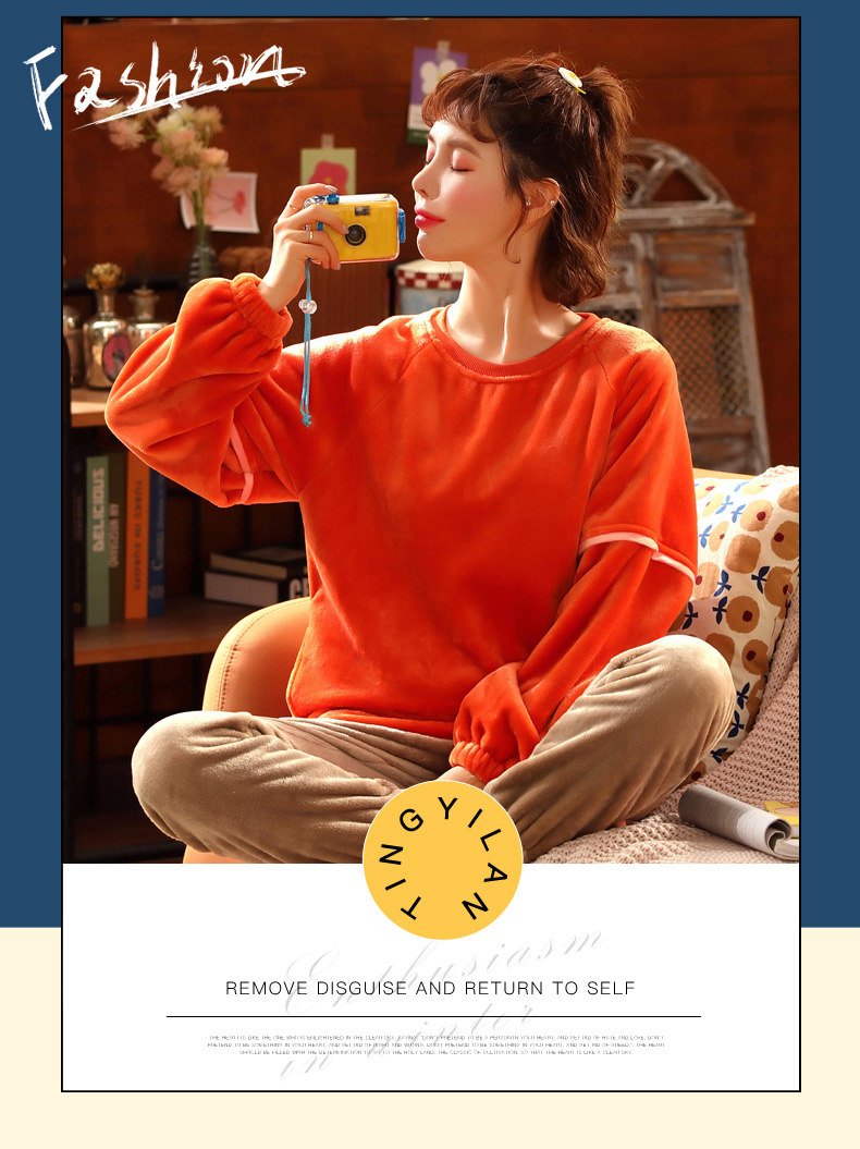 可外穿運動套裝加厚法蘭絨冬睡衣