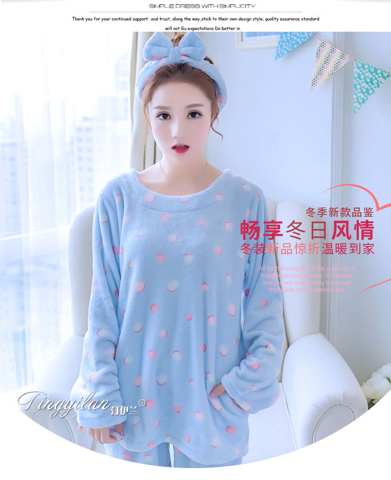 韓版清新加厚法蘭絨長袖珊瑚絨睡衣