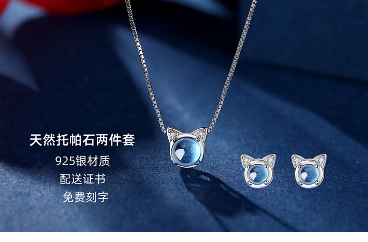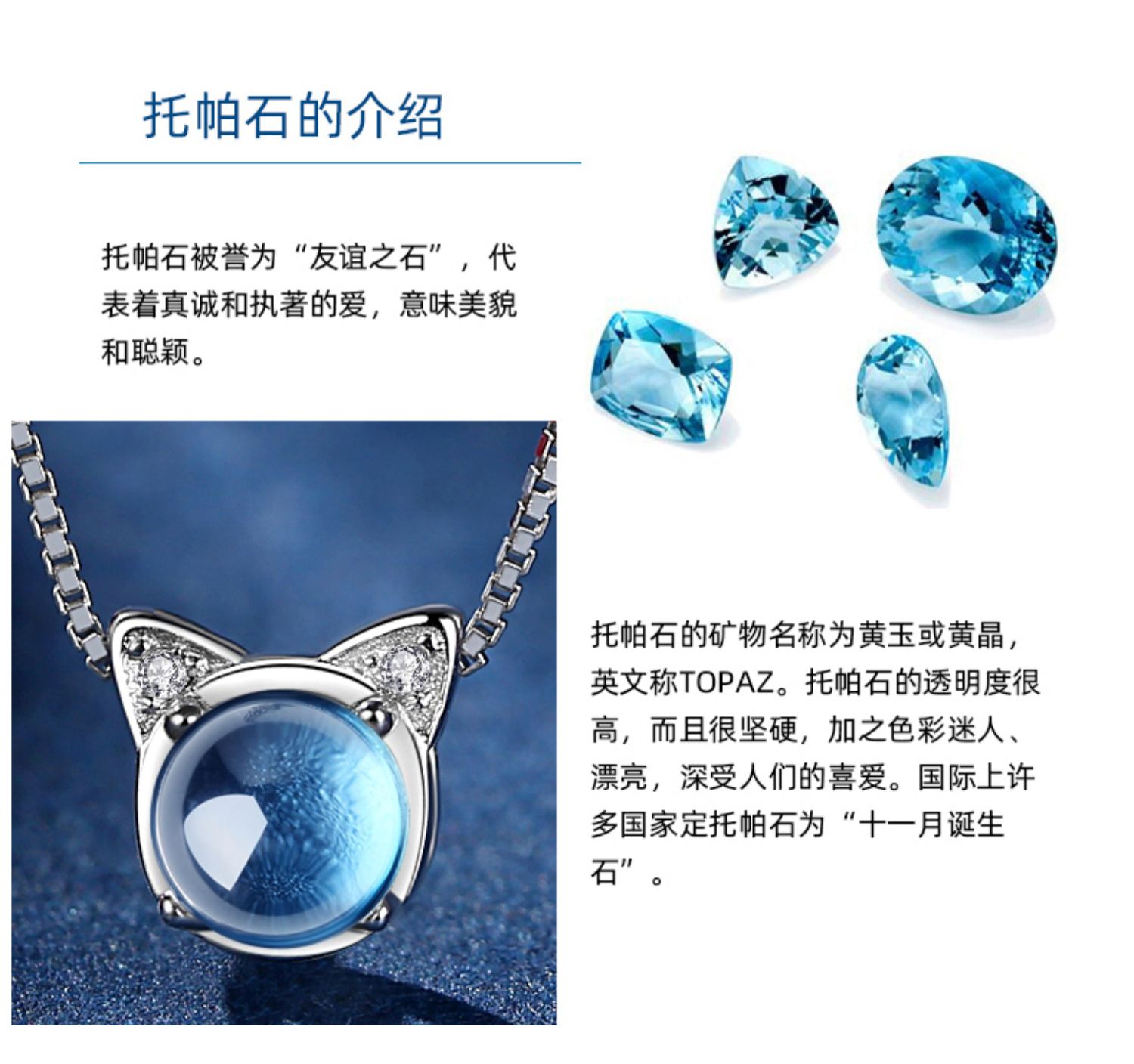 貓咪項鏈女天然托帕石純銀簡約可愛鎖骨鏈吊墜生日禮物配送證書