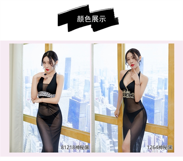 性感低胸連衣裙透視黑色真空女裝網紗露背禮服桑拿包臀薄款長裙子