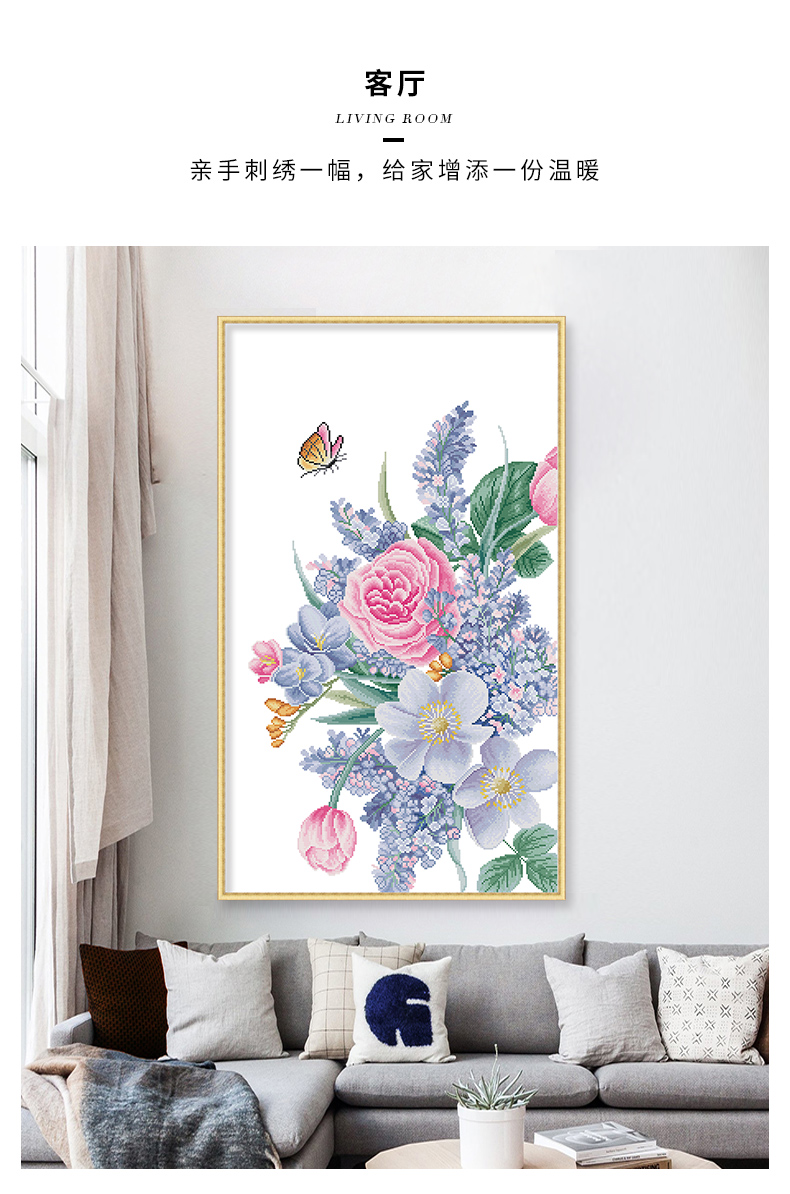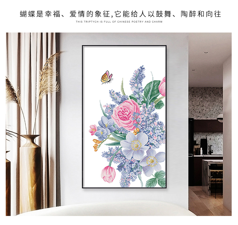 十字繡2023新款蝶戀花客廳餐廳簡約現代玄關花卉手工線繡自己繡