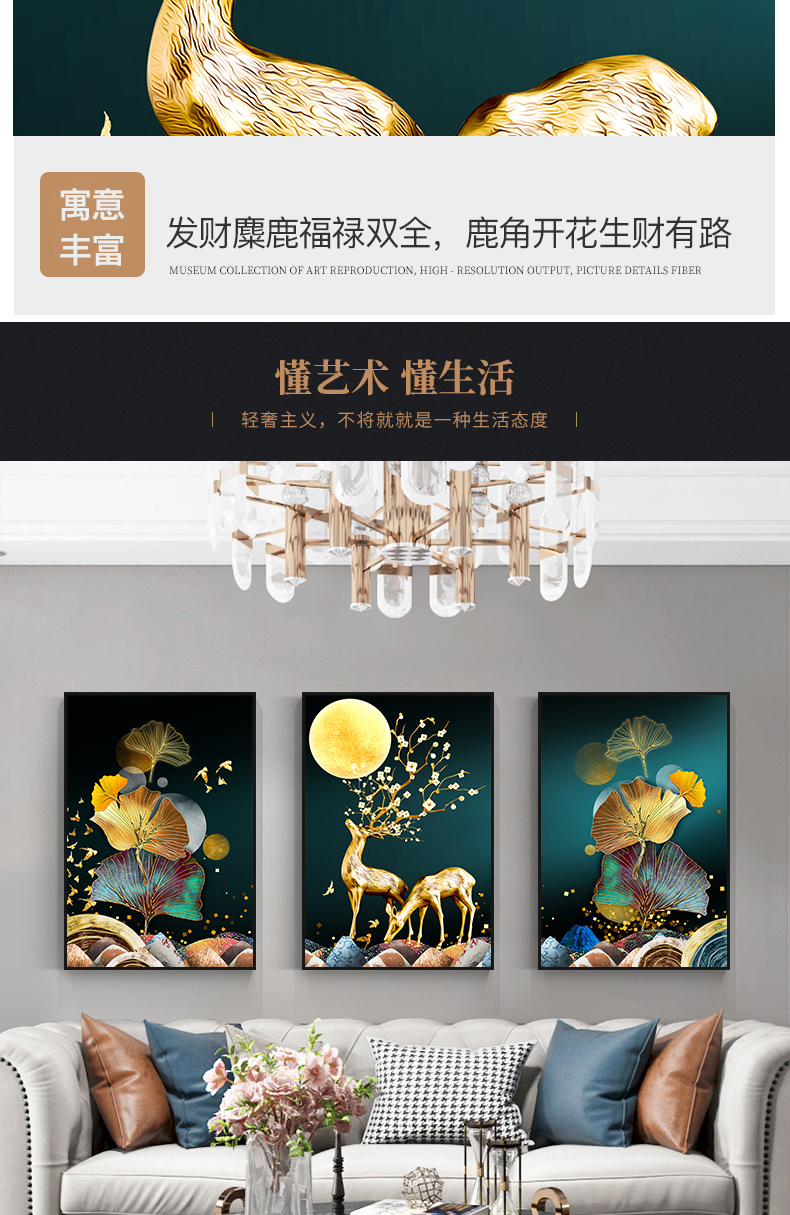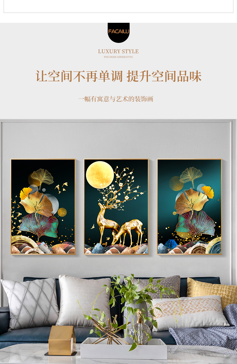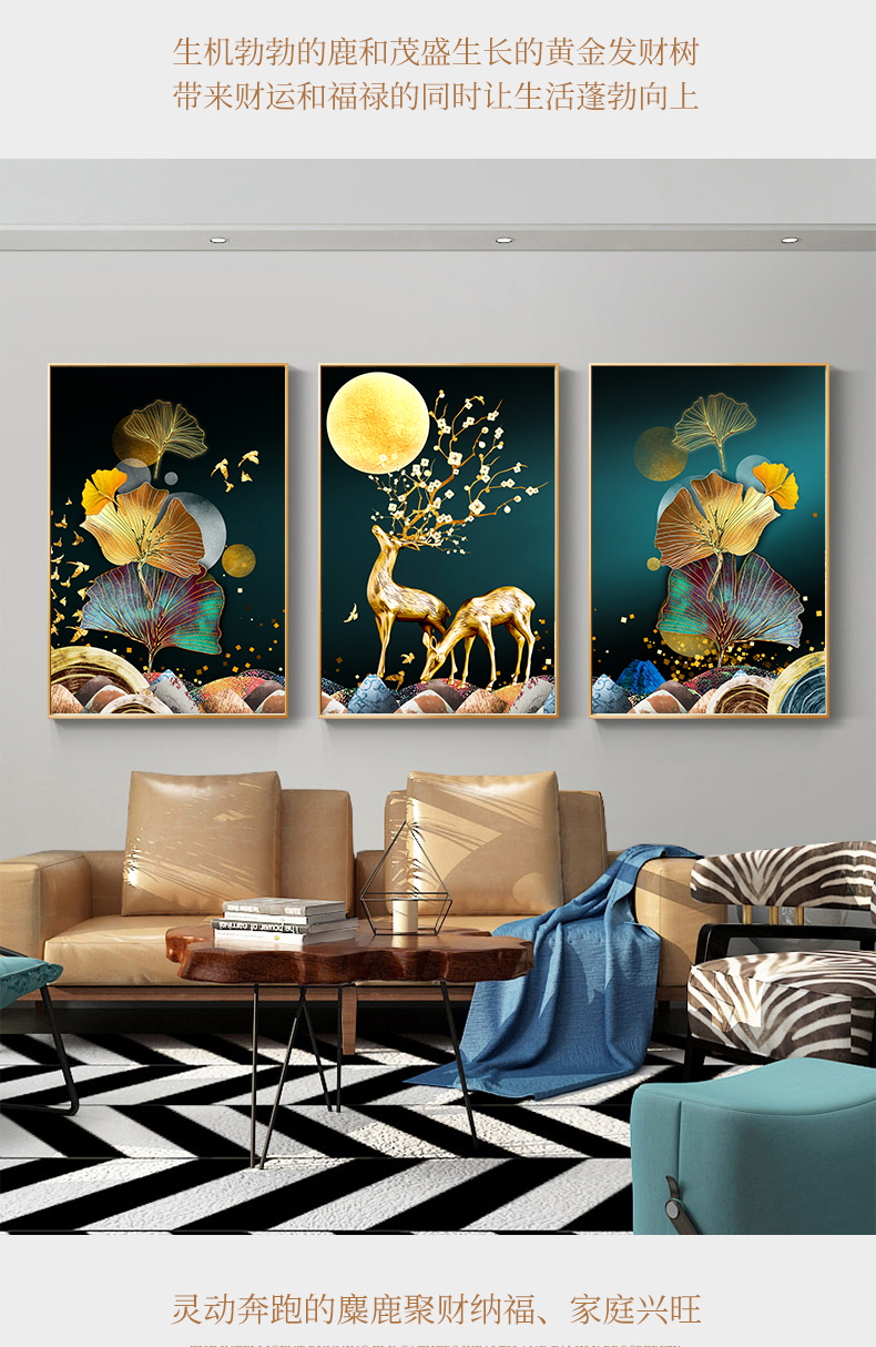 三聯畫十字繡2023新款線繡客廳臥室手工自己繡發財鹿簡約現代輕奢