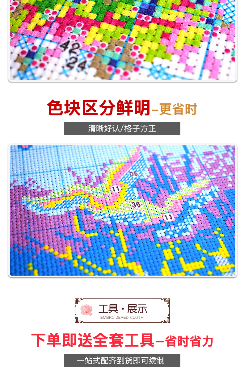 2023新款線繡三聯畫客廳大幅十字繡