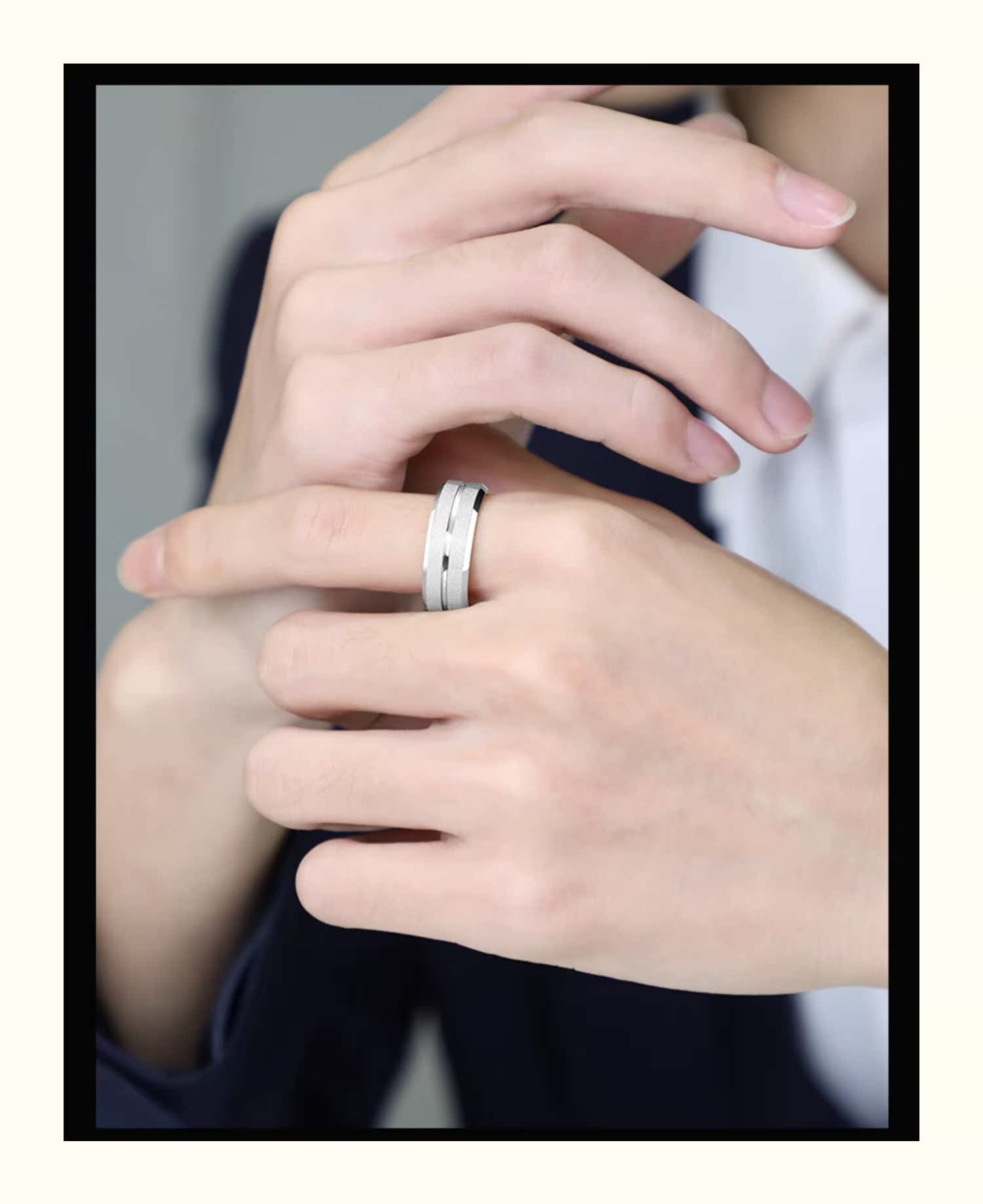 颯雅男士潮高級感食指旋轉鎢金戒指