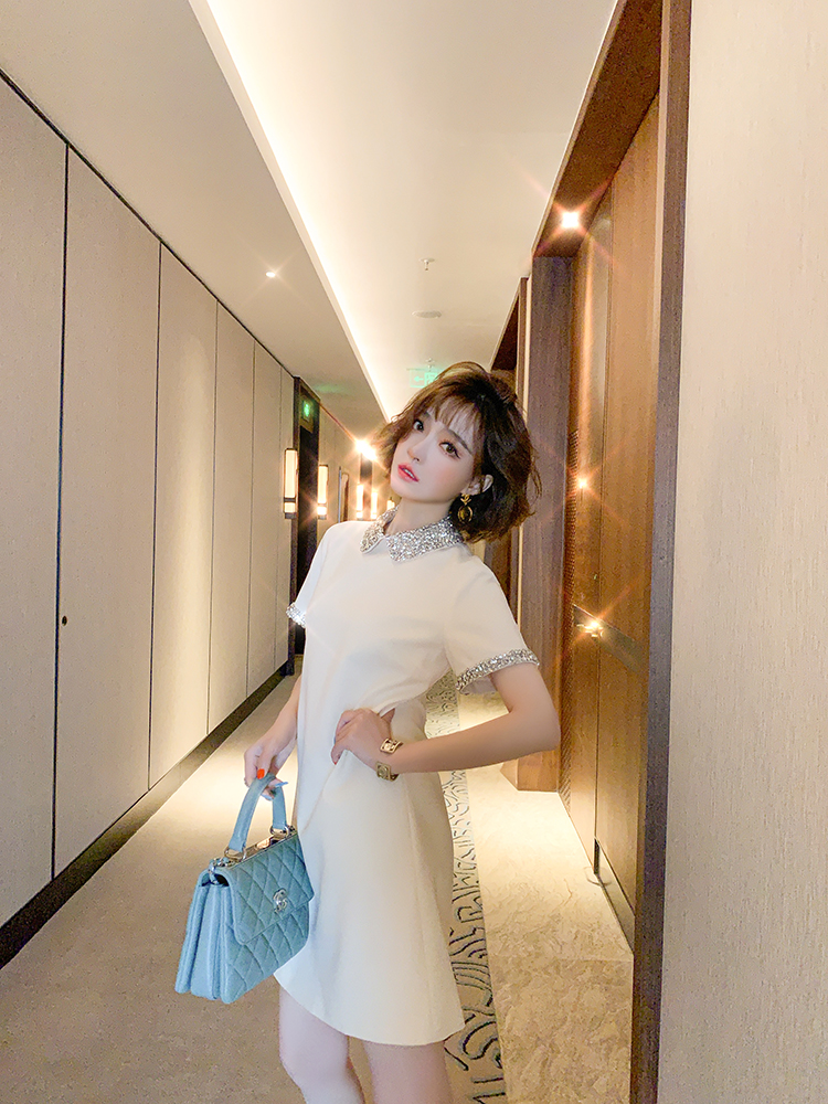 領口和袖子由很多種大小不一樣的jin口捷克鉆,