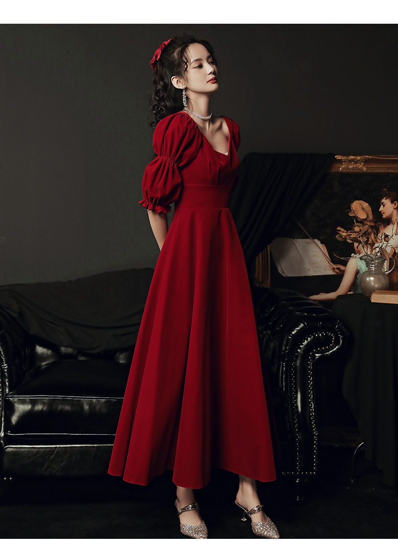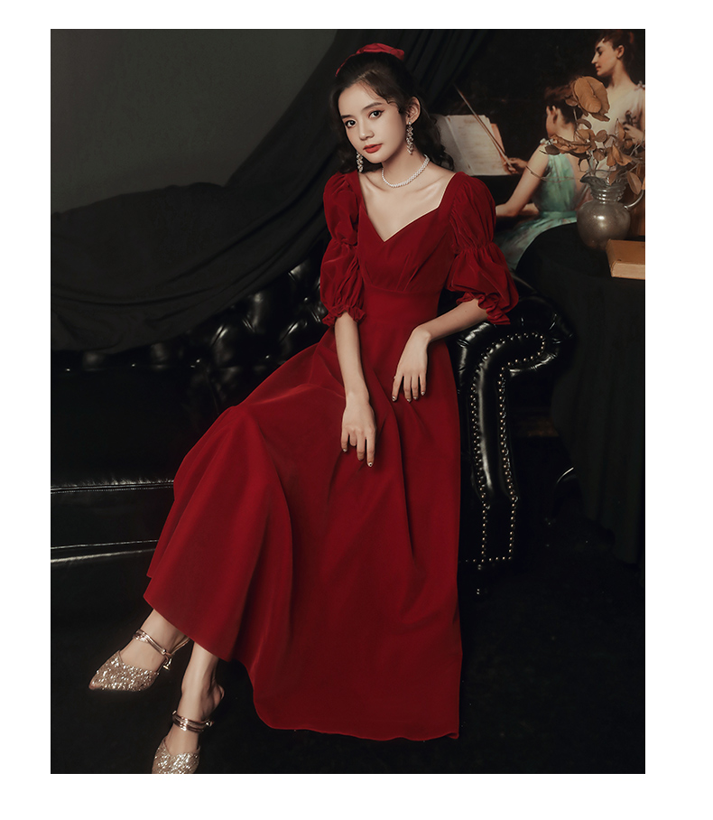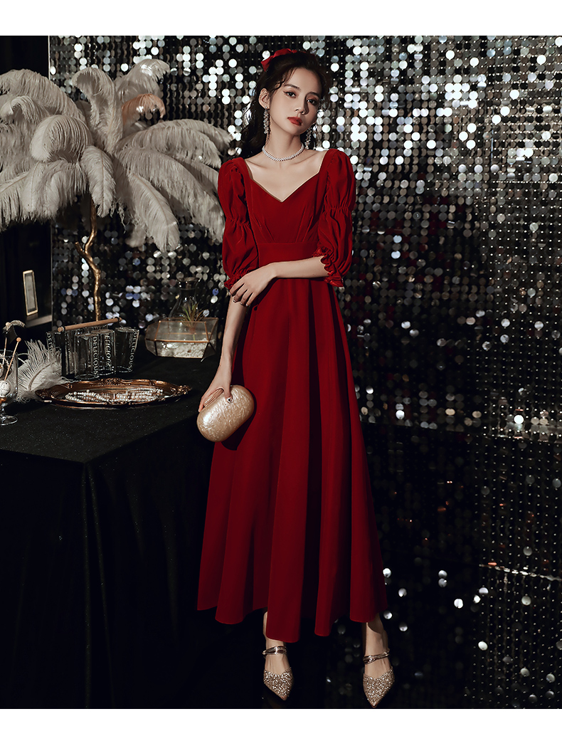 敬酒服新娘2023新款冬酒紅色長袖結婚v領晚禮服女絲絨連衣裙秋季