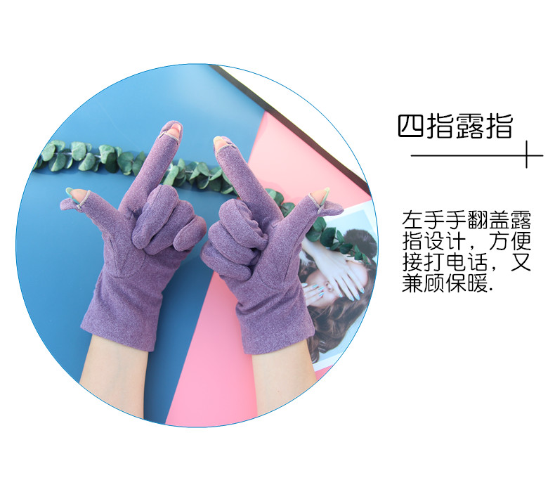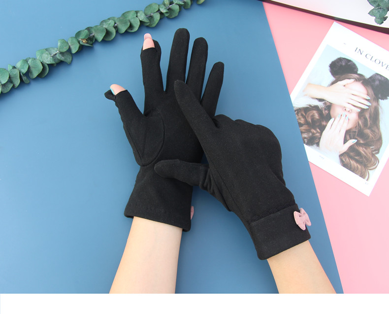 手套女士春天可愛薄款短款彈力保暖騎車開車觸屏翻蓋露二指秋冬季