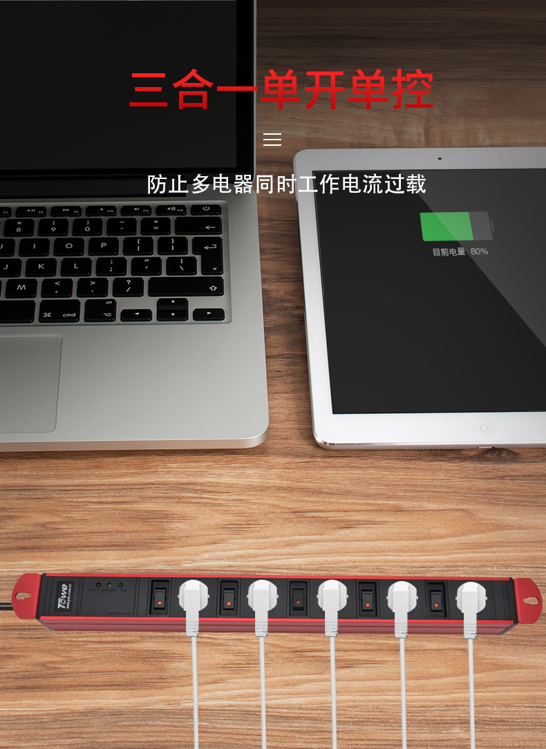 towe同為炫彩國標插座總控防雷開關