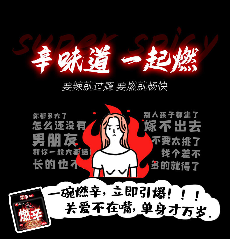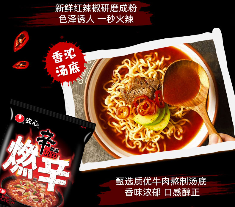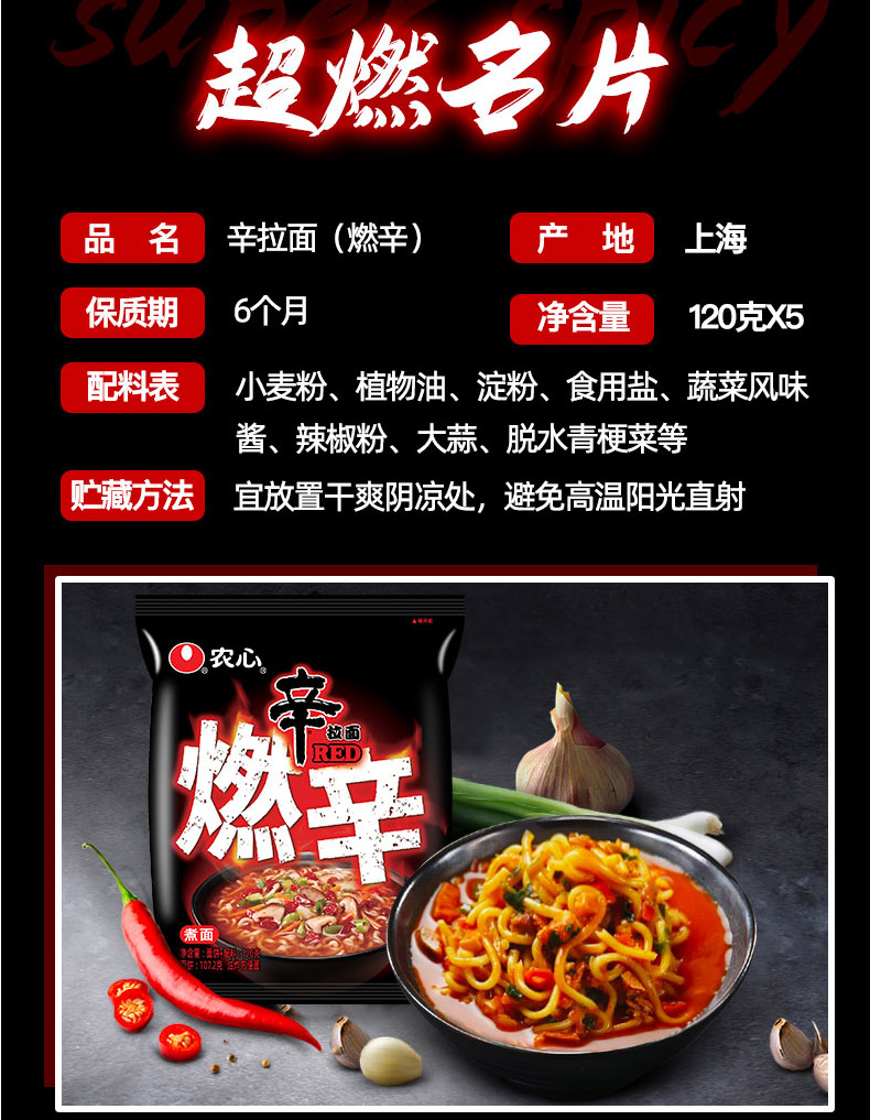 農心燃辛辛拉面韓式湯面速食拉面方便面泡面超辣袋裝整包120g*5袋