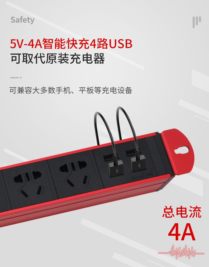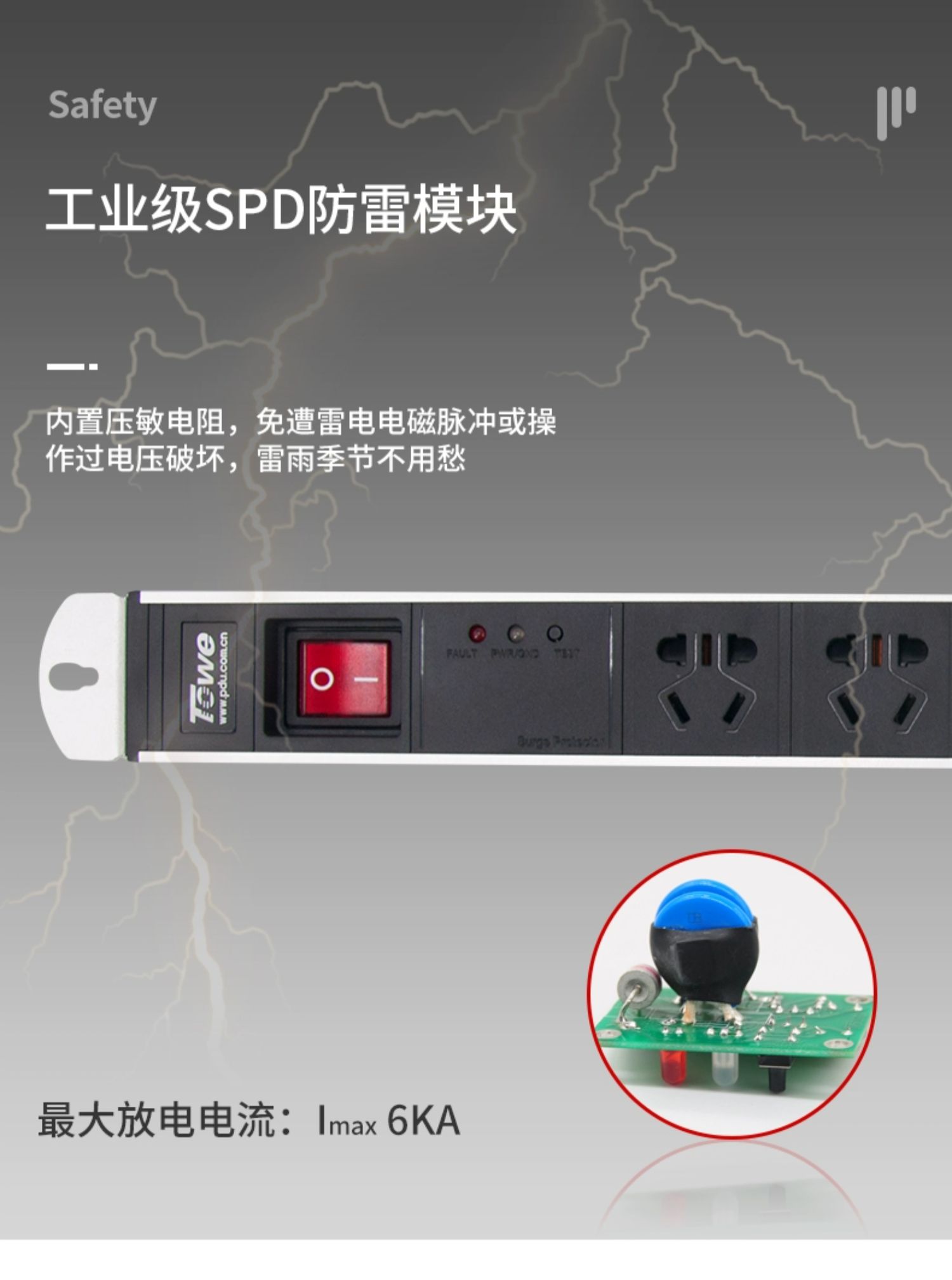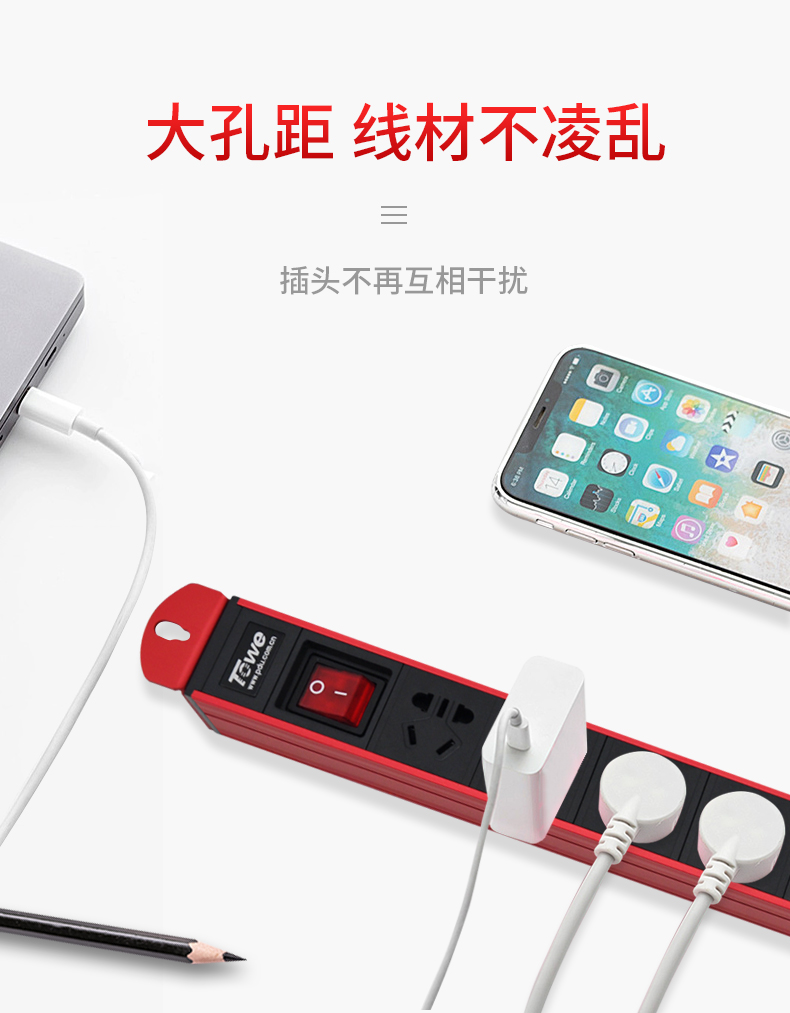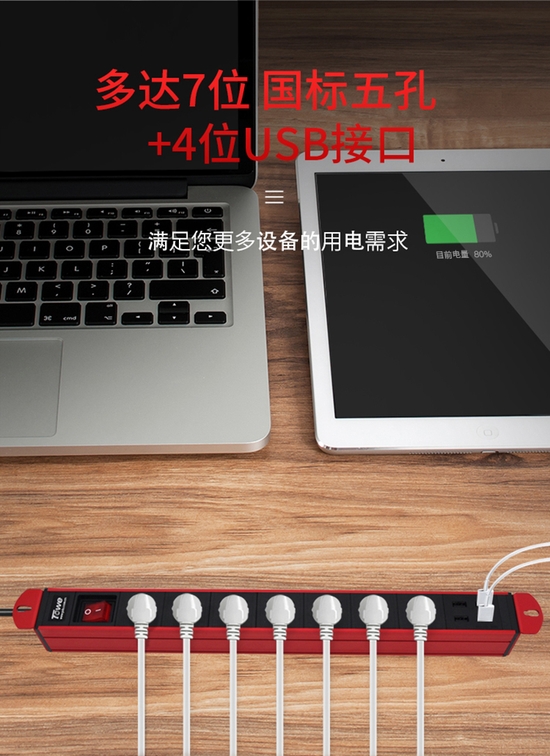 TOWE同為炫彩國標插座總控開關工業級防雷多功能帶USB充電插排