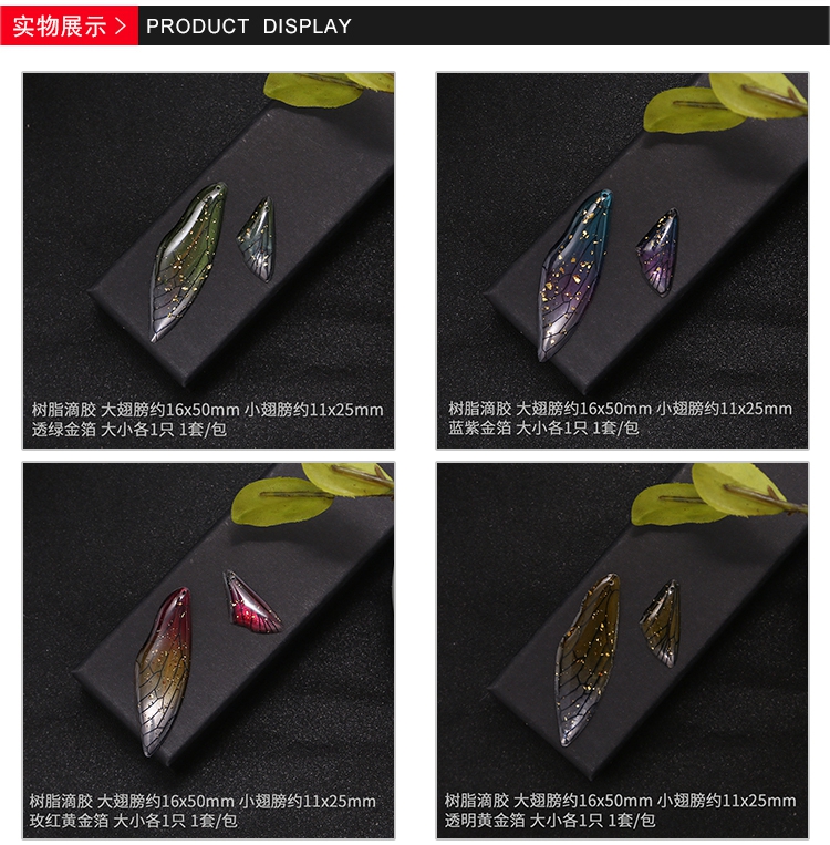 樹脂滴膠金箔漸變大小翅膀耳環制作材料 diy手工自制項鏈飾品配件