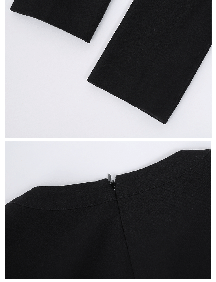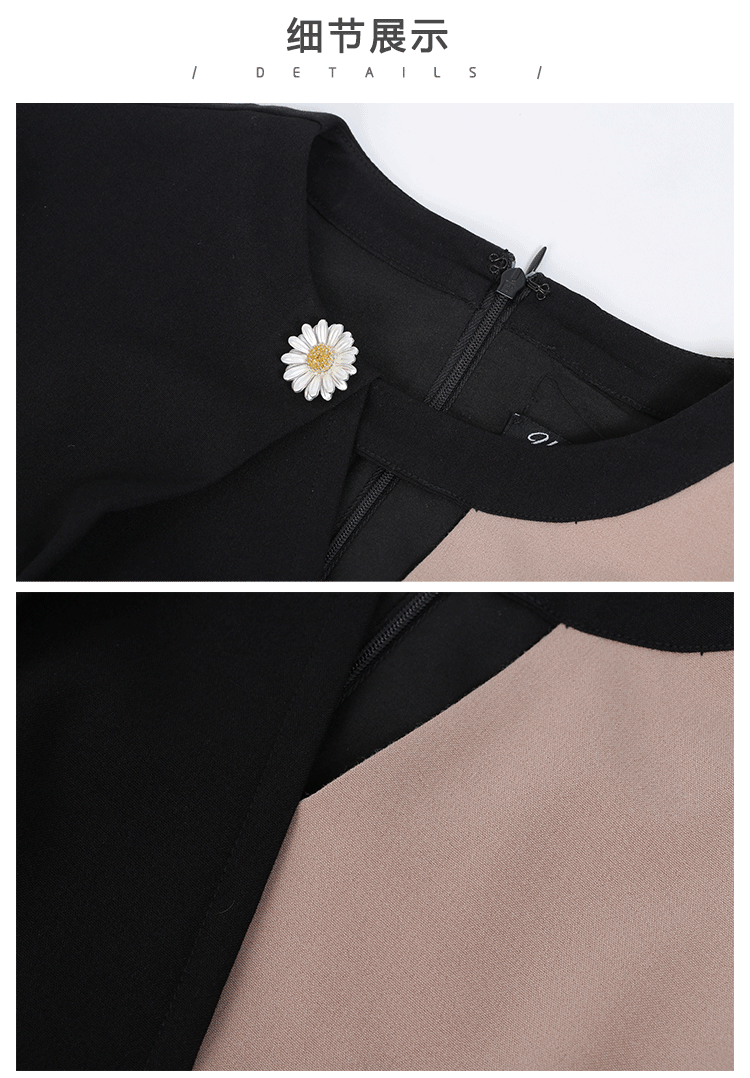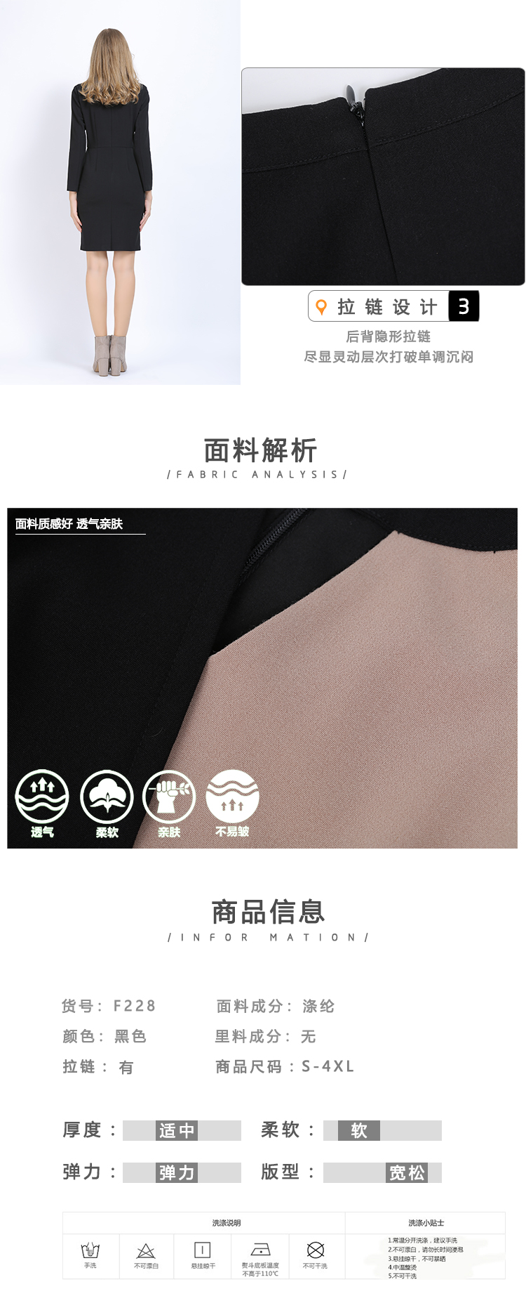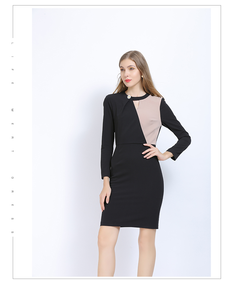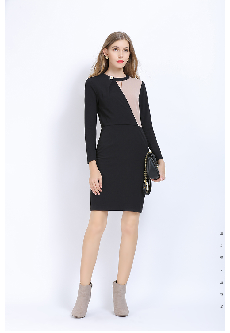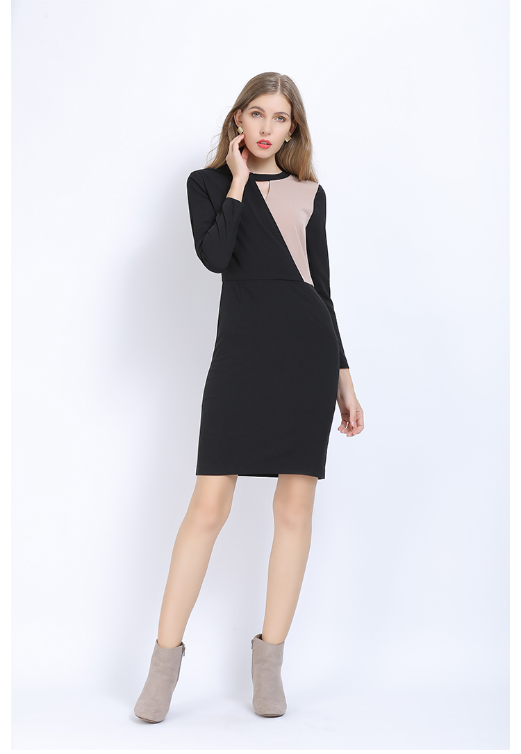 歐美風早秋新款氣質女裝H型直筒一步拼接撞色職業大碼連衣裙長袖