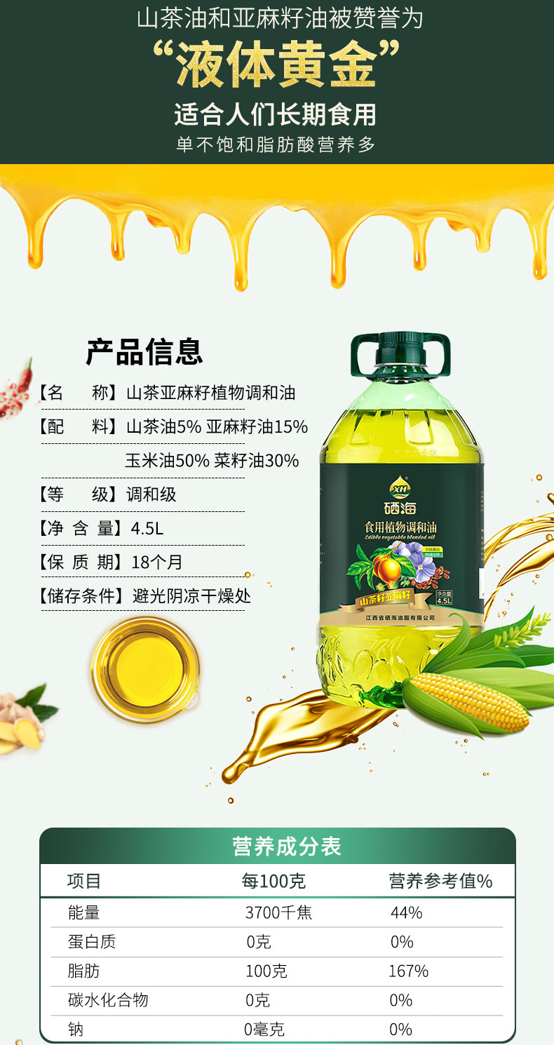 硒海 山茶亞麻籽食用油調和油4.5L*2桶 非轉基因色拉植物油家用
