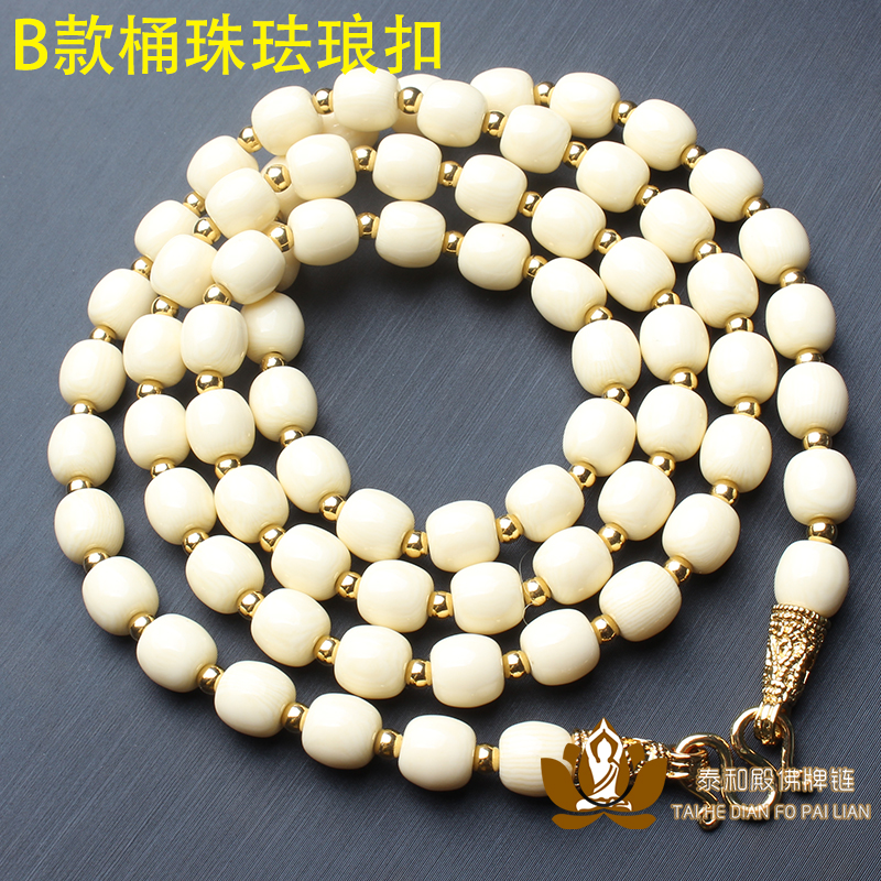 泰國佛牌鏈水滴仿牙果鈦鋼金色圓桶珠復古吊墜繩葫蘆扣唐卡保色