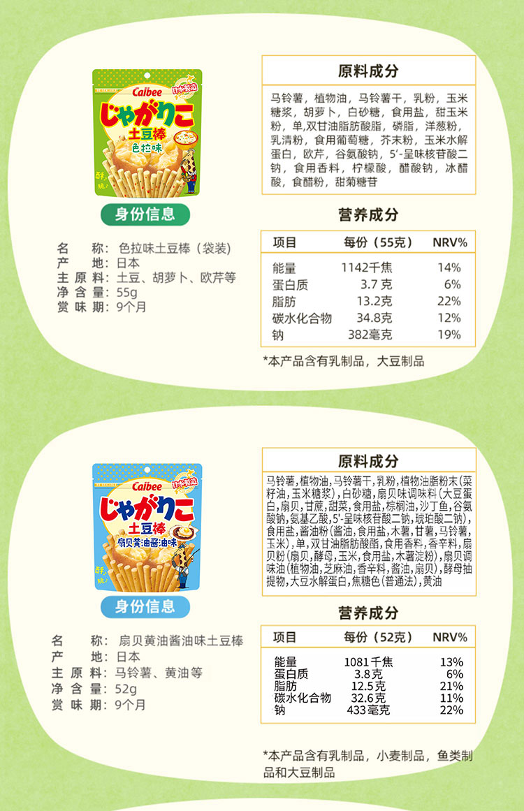卡樂比北海道三兄弟2盒日本品薯條