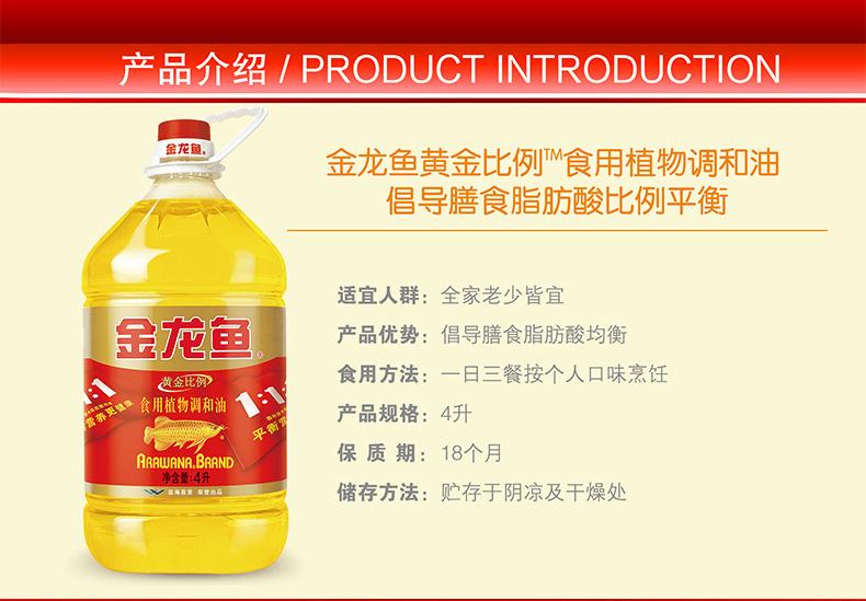 金龍魚黃金比例1比1:1食用植物調和油4L升大桶裝家商用炒菜色拉油