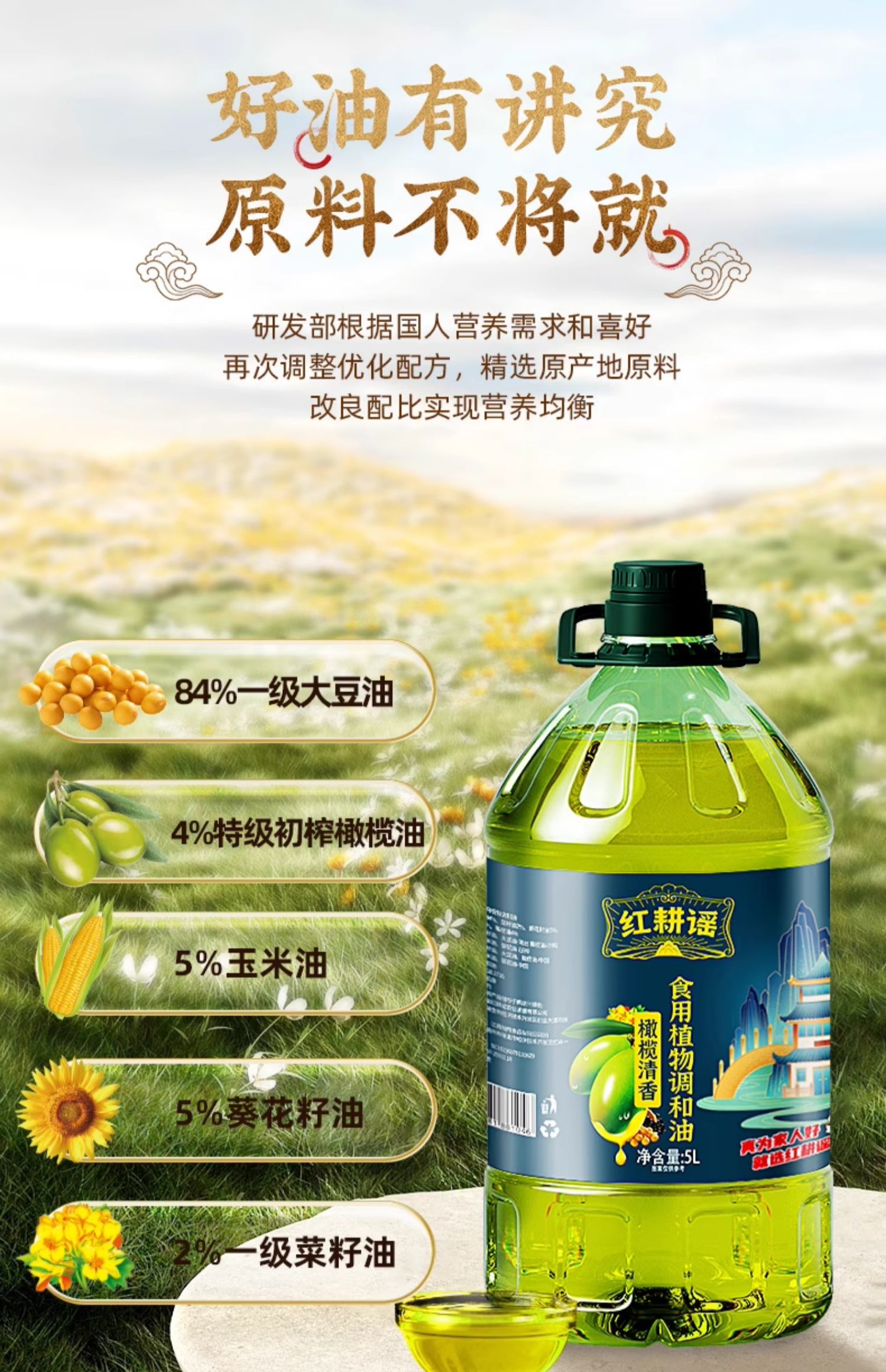 紅耕謠橄欖油特級初榨食用油家用5升*2桶裝植物調和油官方旗艦店