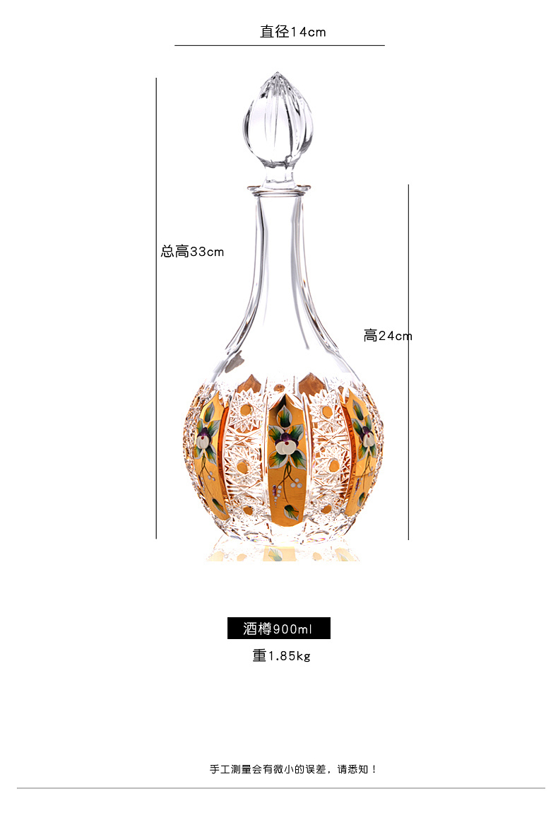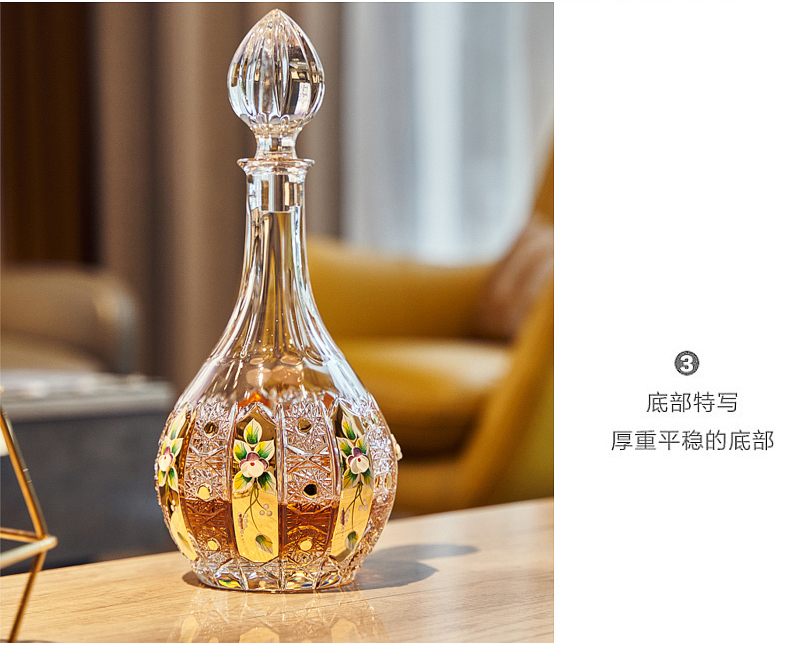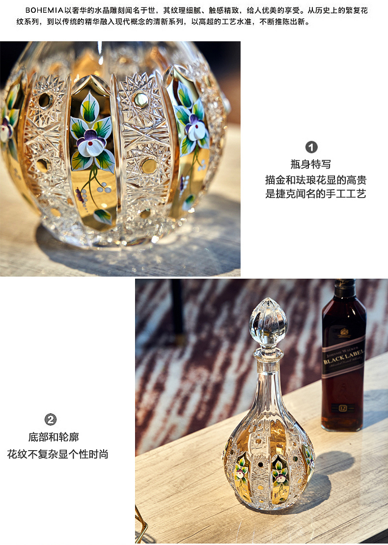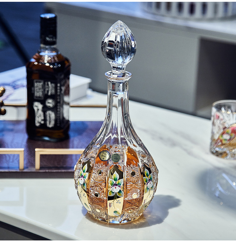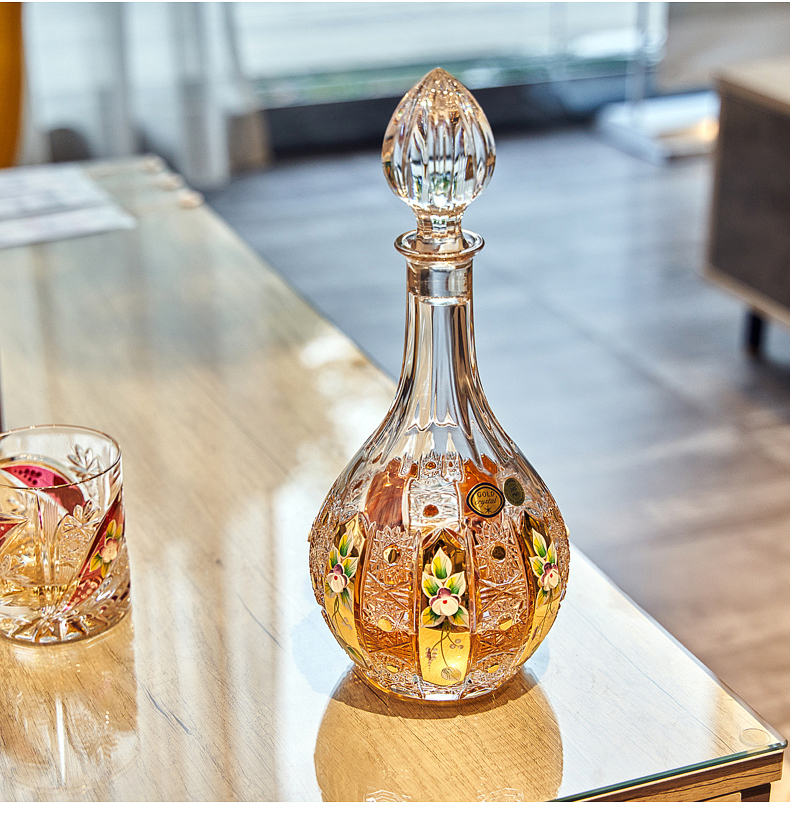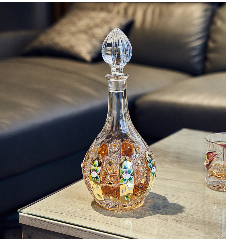 新品捷克BOHEMIA水晶玻璃酒樽創意醒酒器家用帶蓋酒瓶描金琺瑯花
