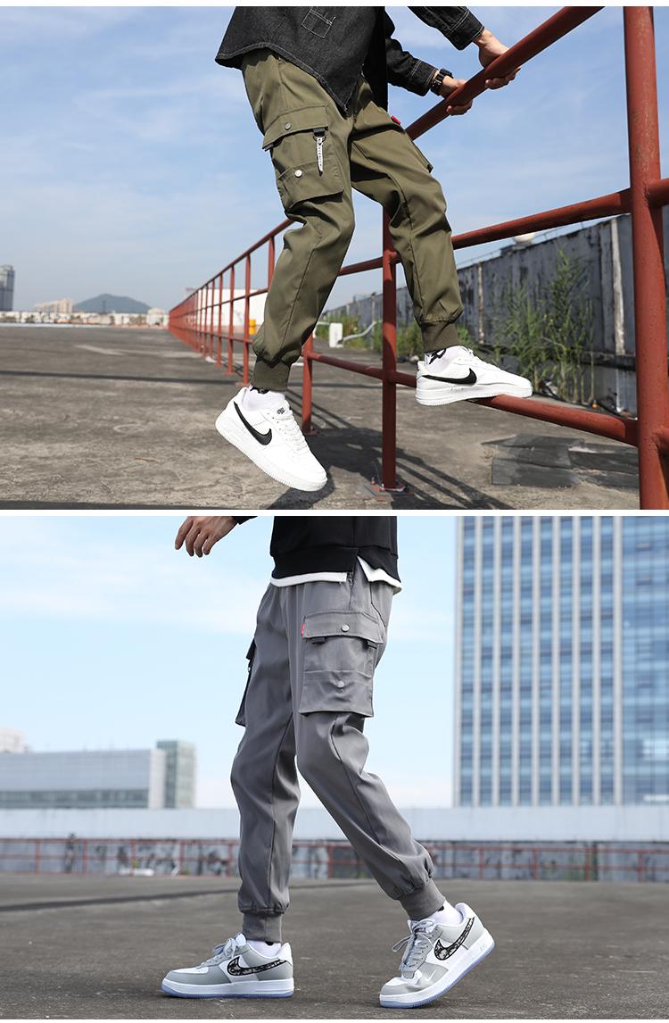 秋季工裝褲男潮牌修身顯瘦束腳褲韓版潮流加絨加厚ins機能休閑褲