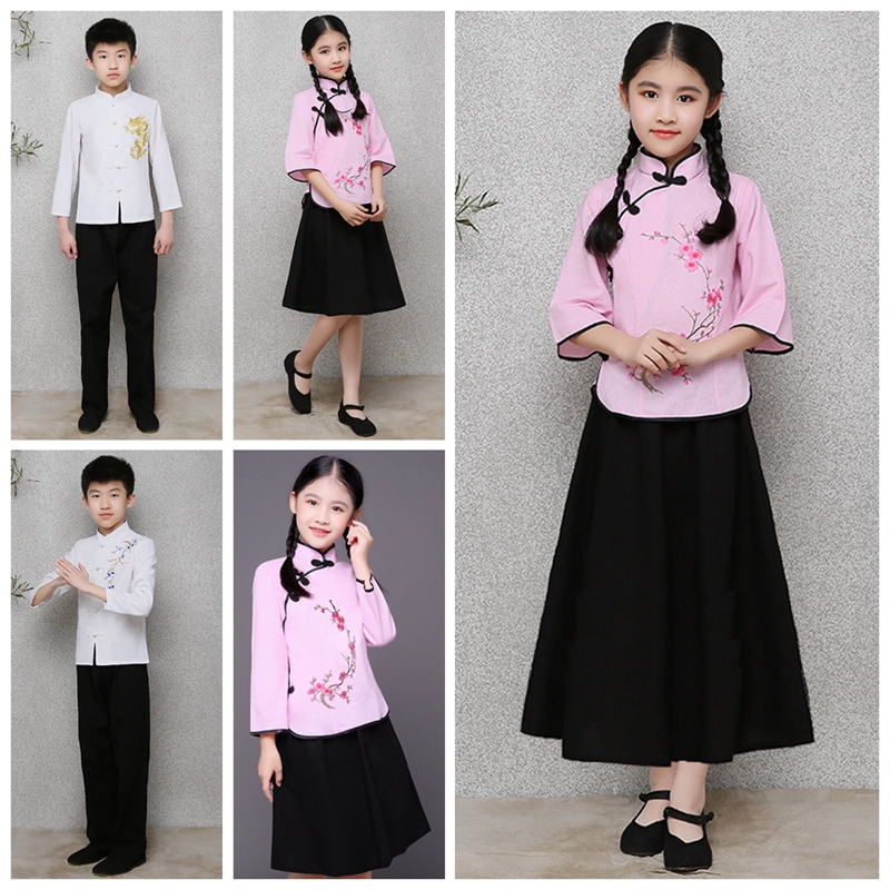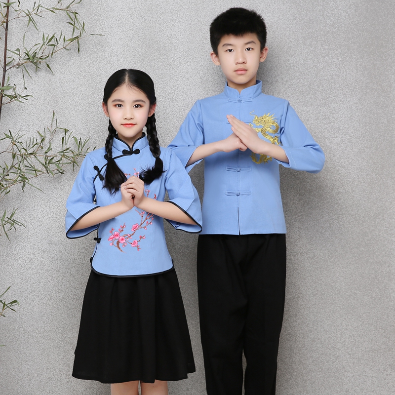 民國風演出服兒童合唱朗誦服小學生男女童五四青年中山裝表演服裝
