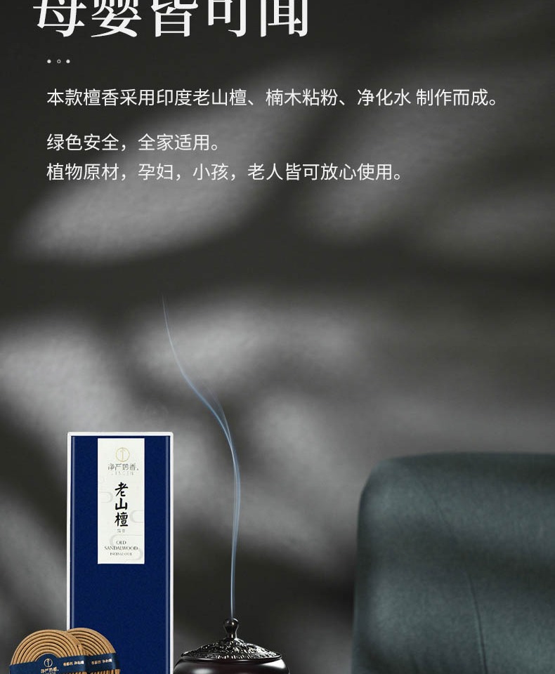 凈嚴妙香老山檀香熏香家用室內盤香天然印度老山檀線香供佛檀香爐