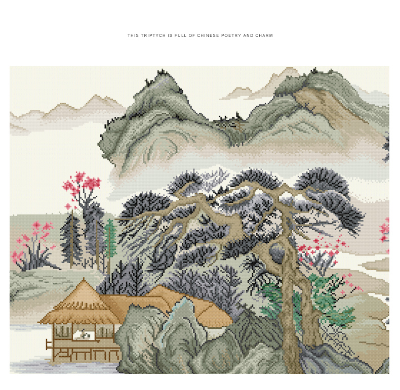 十字繡新中式客廳山水風景水墨版國畫手工自己繡大幅2023線繡新款