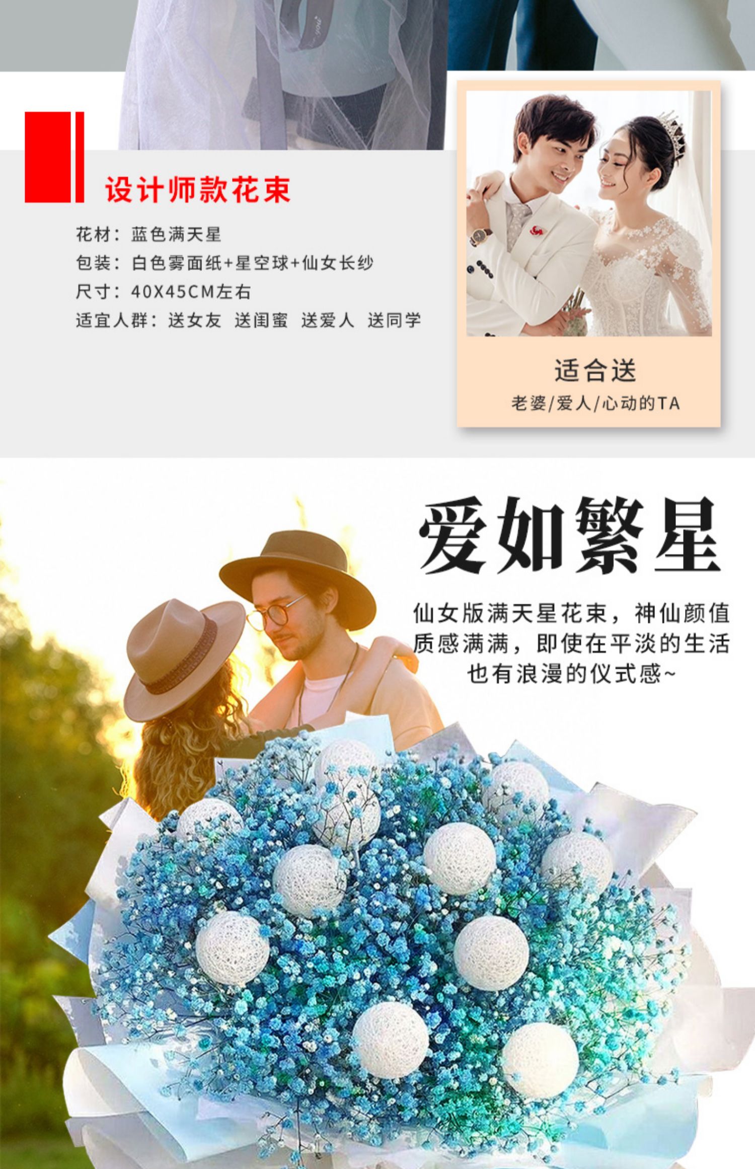滿天星碎冰藍玫瑰禮盒表白送女朋友