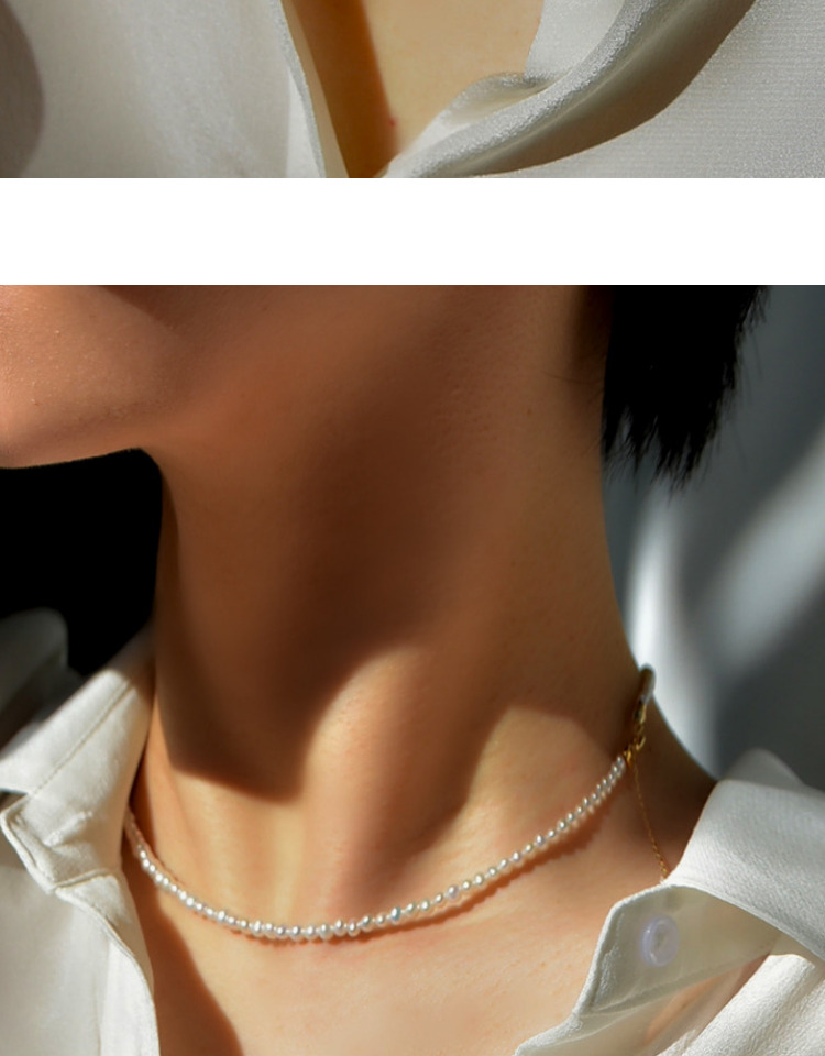 克拉人魚14k金新款珍珠項鏈女淡水小珍珠鎖骨鏈小米珠頸鏈天然
