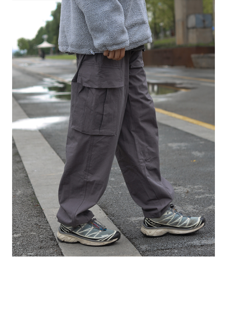 Nobodyknows秋季機能純色基礎戶外傘兵褲工裝潮牌百搭長褲休閑褲