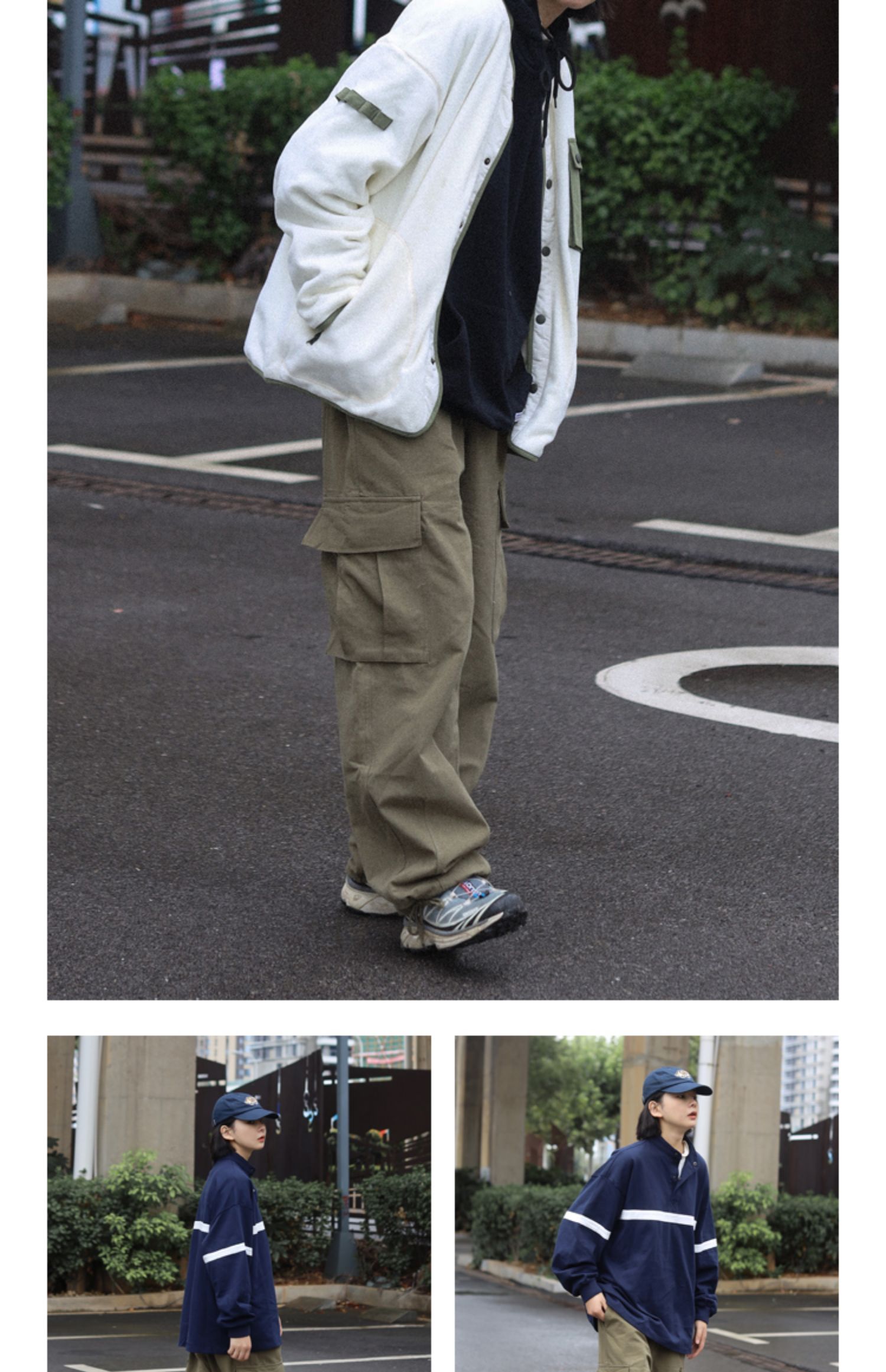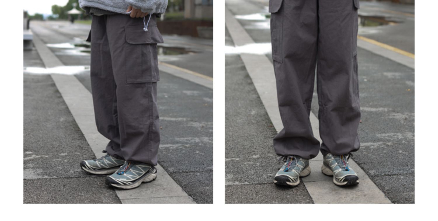 Nobodyknows 日系復古純色口袋百搭街頭情侶工裝九分褲束腳闊腿褲