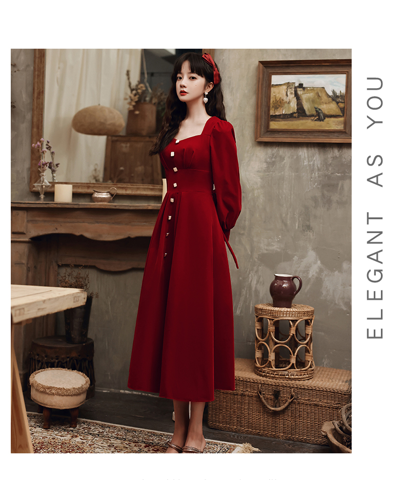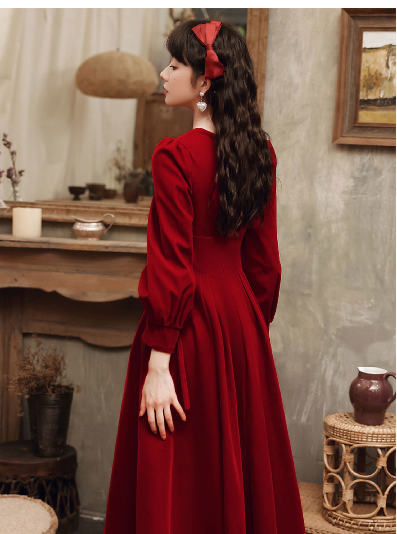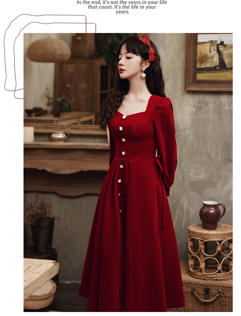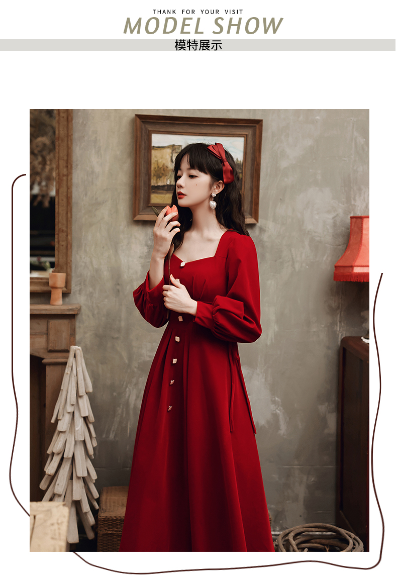 新娘酒紅色平時可穿赫本簡單敬酒服