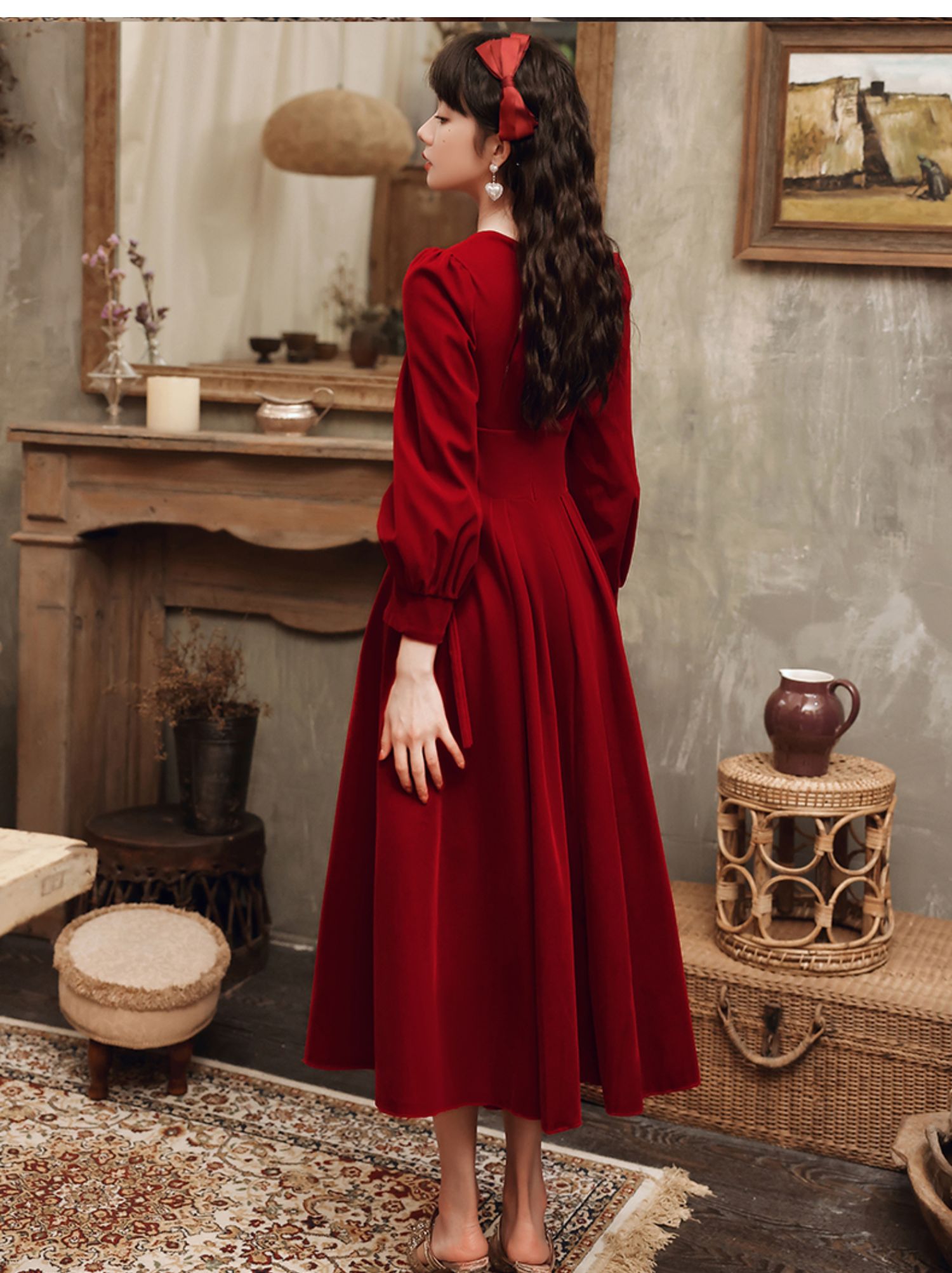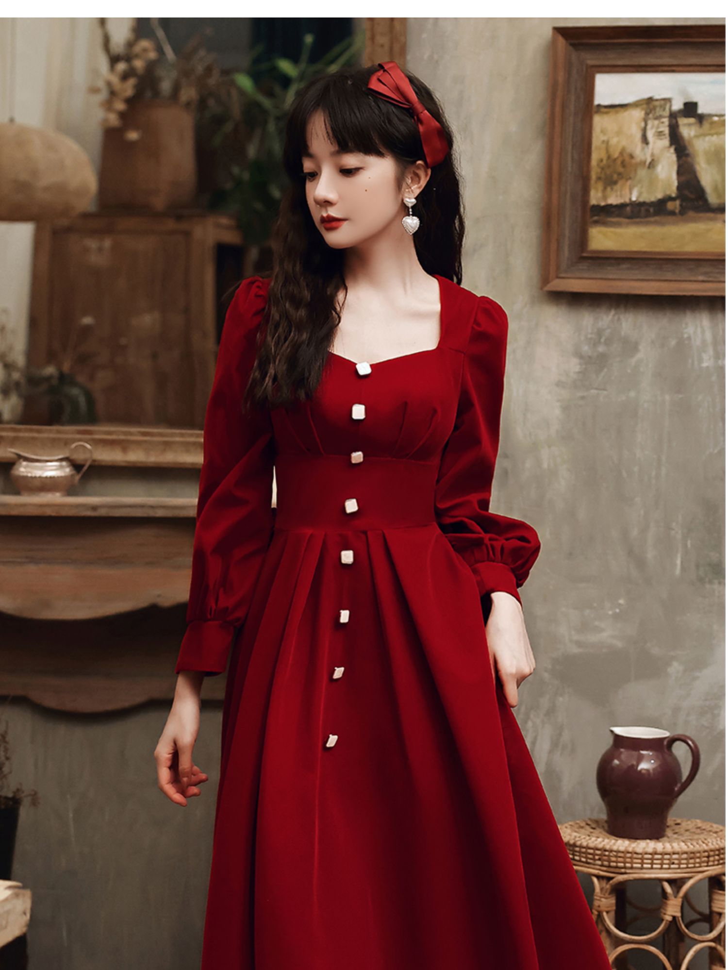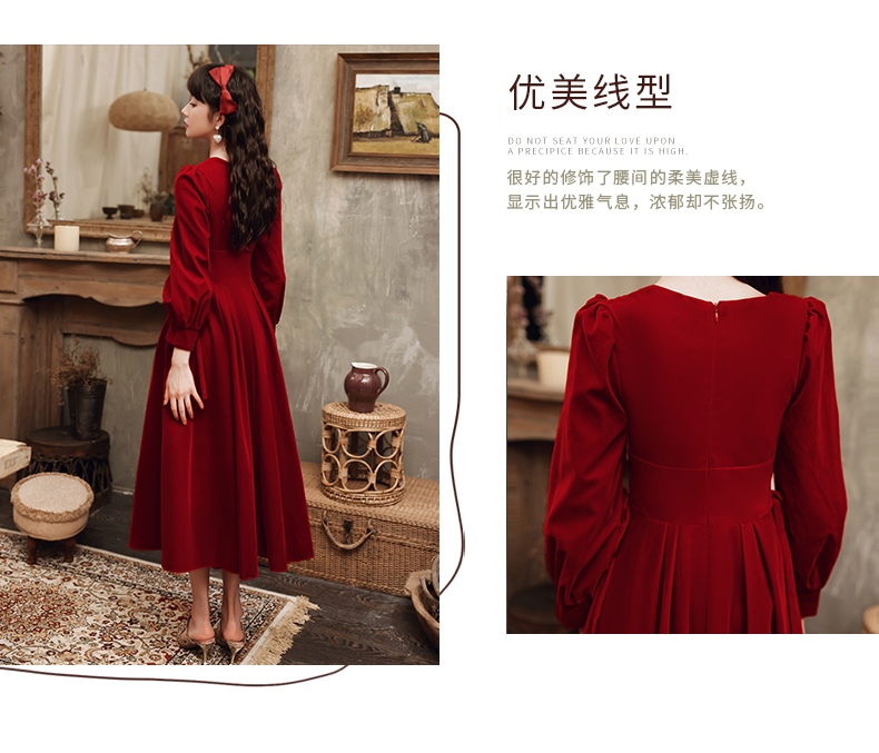新娘酒紅色平時可穿赫本簡單敬酒服