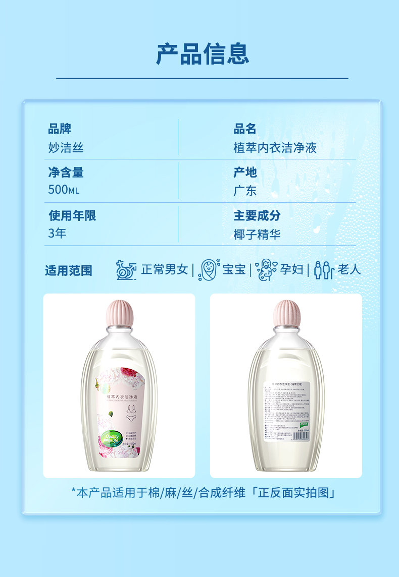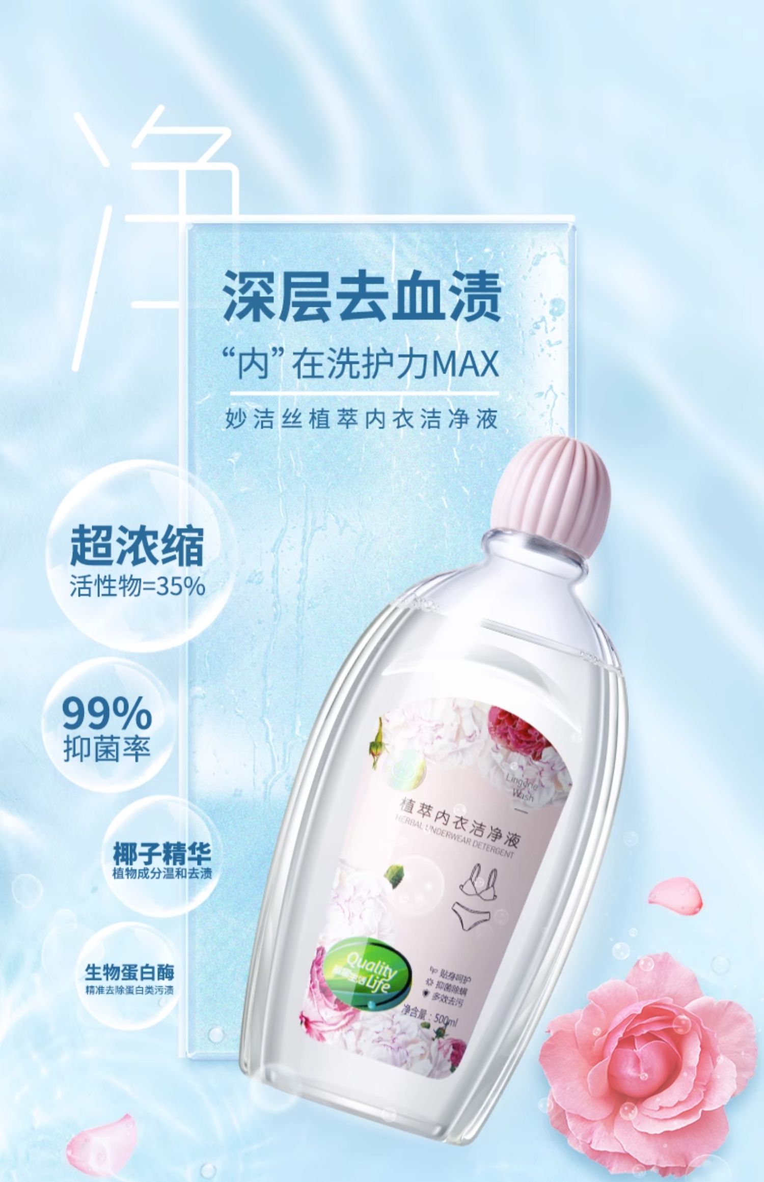 妙潔絲植萃內衣潔凈液專用內褲清洗液清洗劑洗衣液除螨抑菌去血漬