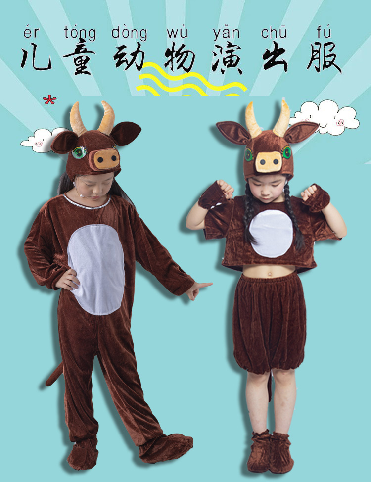 元旦表演兒童動物演出服裝牛奶牛幼兒成人男童女童卡通角色扮演牛