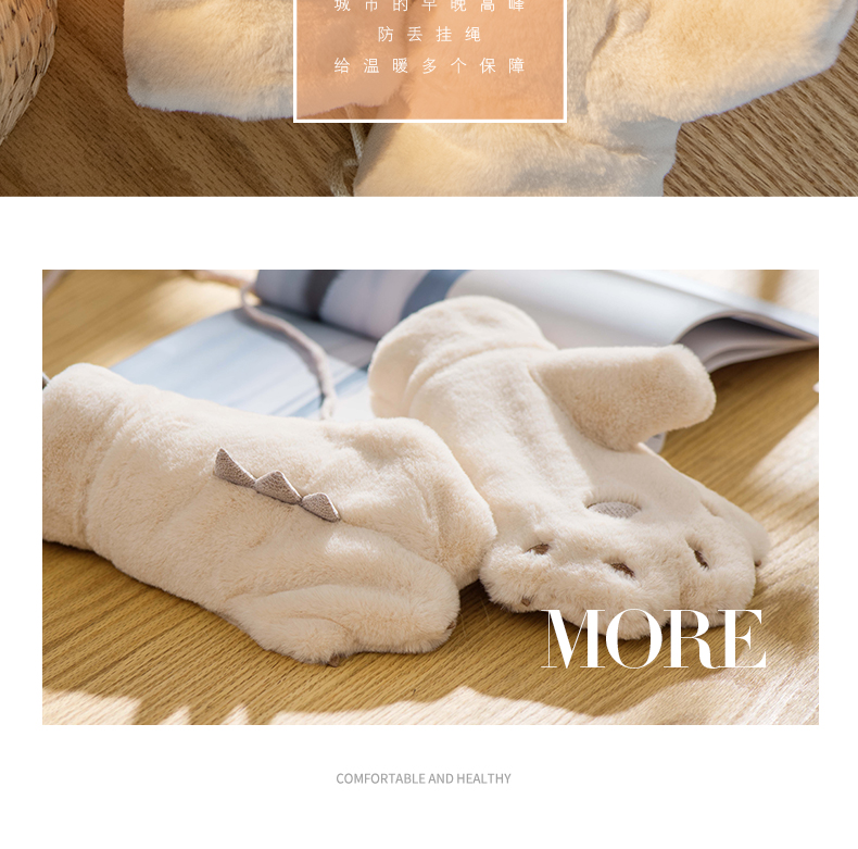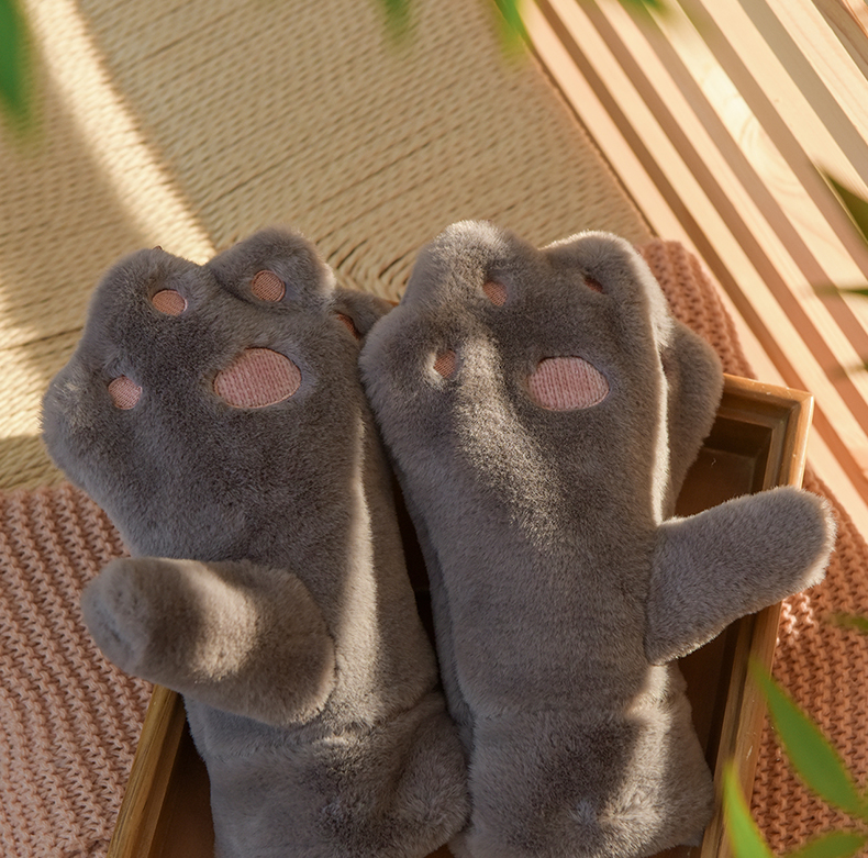 可愛小熊掌毛茸茸手套女生冬季保暖加絨加厚熊爪騎車女士冬天情侶