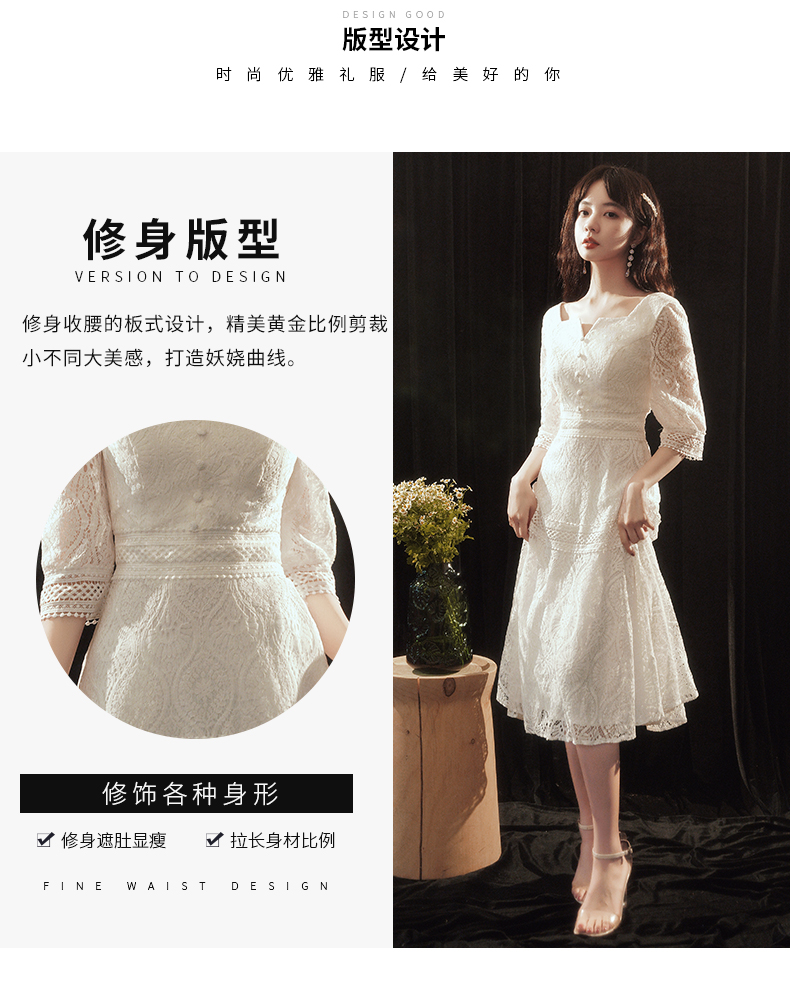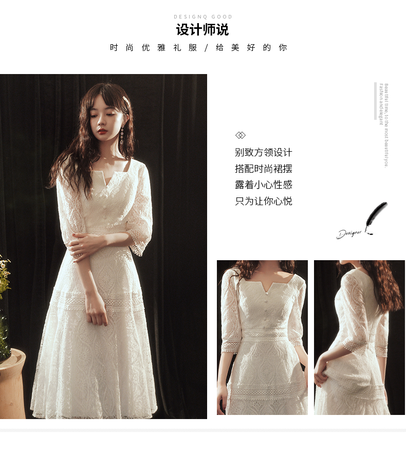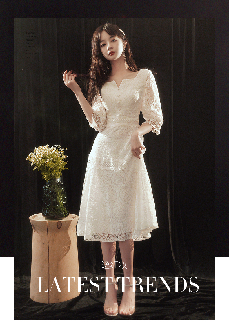 白色洋裝小禮服女2023新款宴會蕾絲生日領證連衣裙平時可穿伴娘服