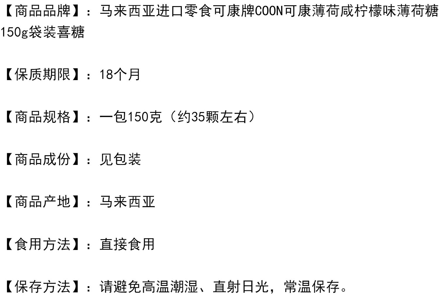 馬來西亞進口零食可康牌COON可康薄荷咸檸檬味薄荷糖150g袋裝喜糖