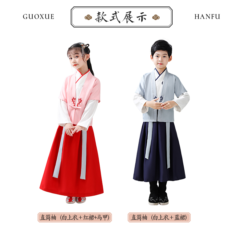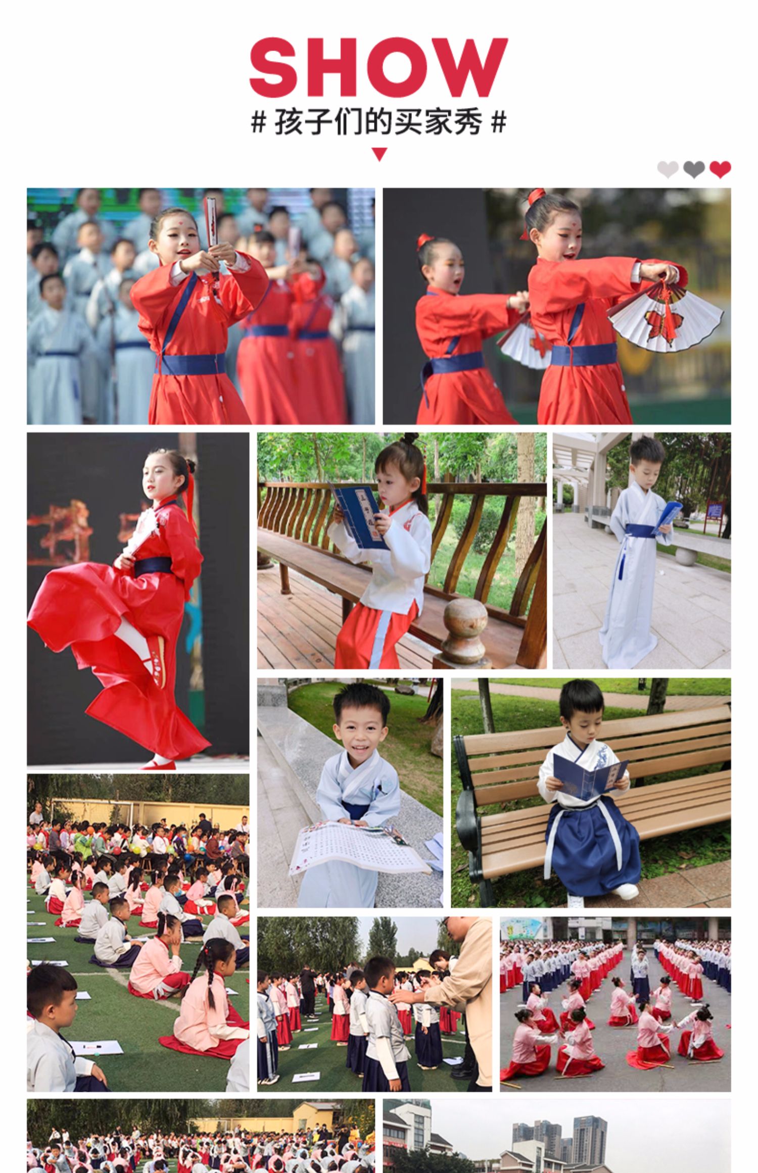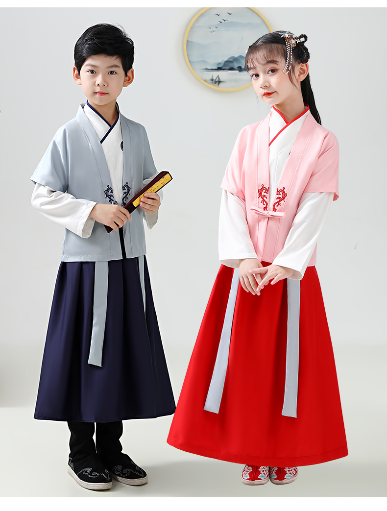 兒童漢服男童國學服古裝小學生新款女書童服裝男孩兒童演出服