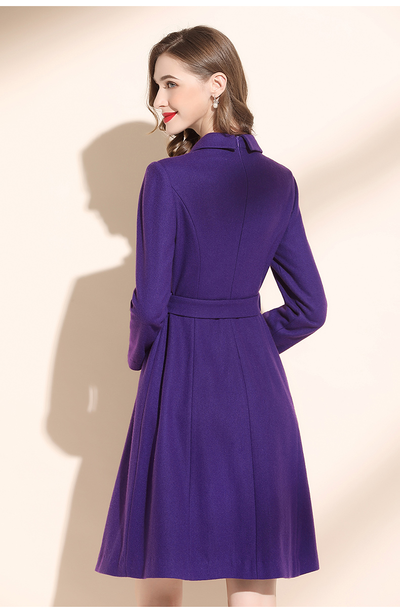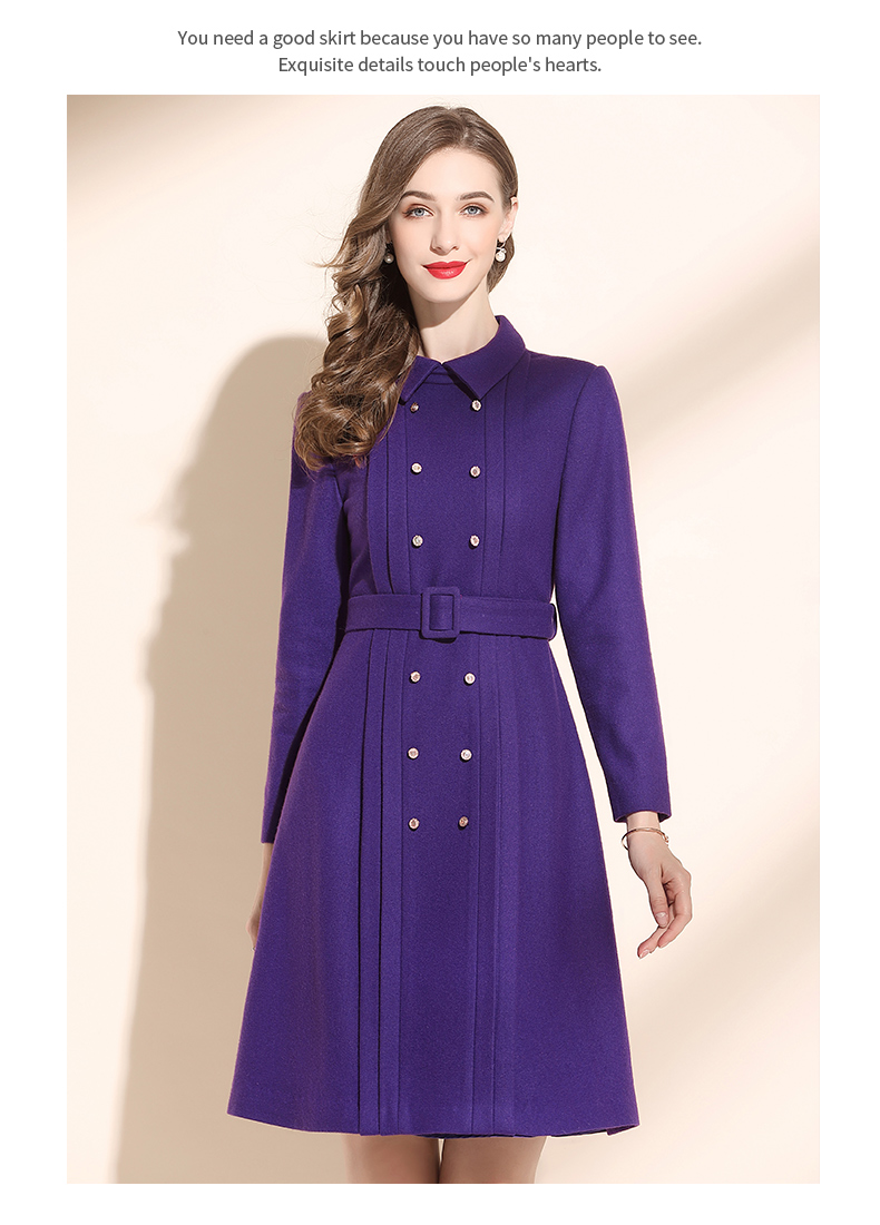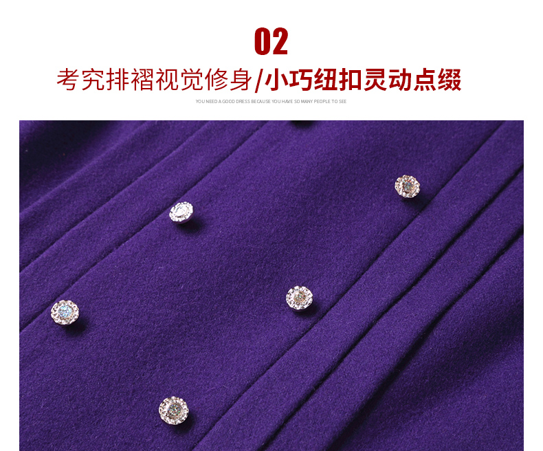 2022冬季新款紫色羊毛裙收腰連衣裙