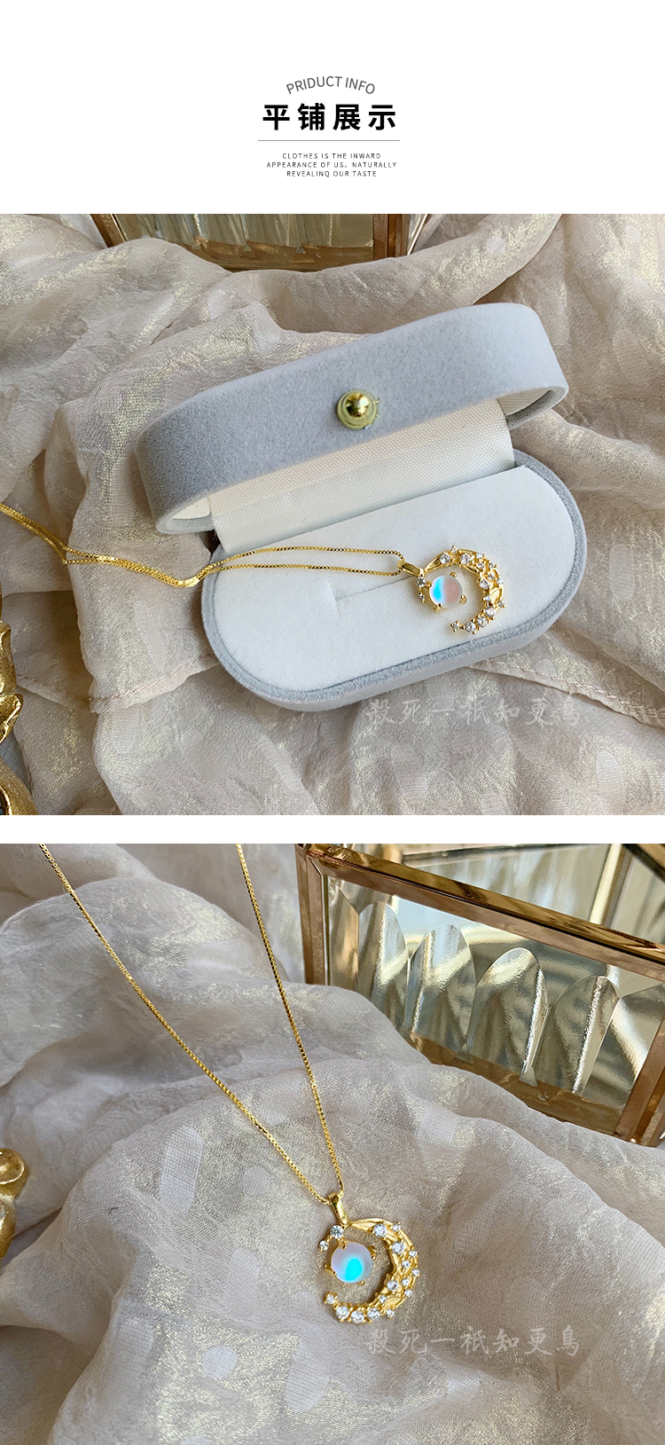 「知更鳥」星月為裳 輕奢鑲鉆溫柔復古宮廷風月亮吊墜項鏈鎖骨鏈